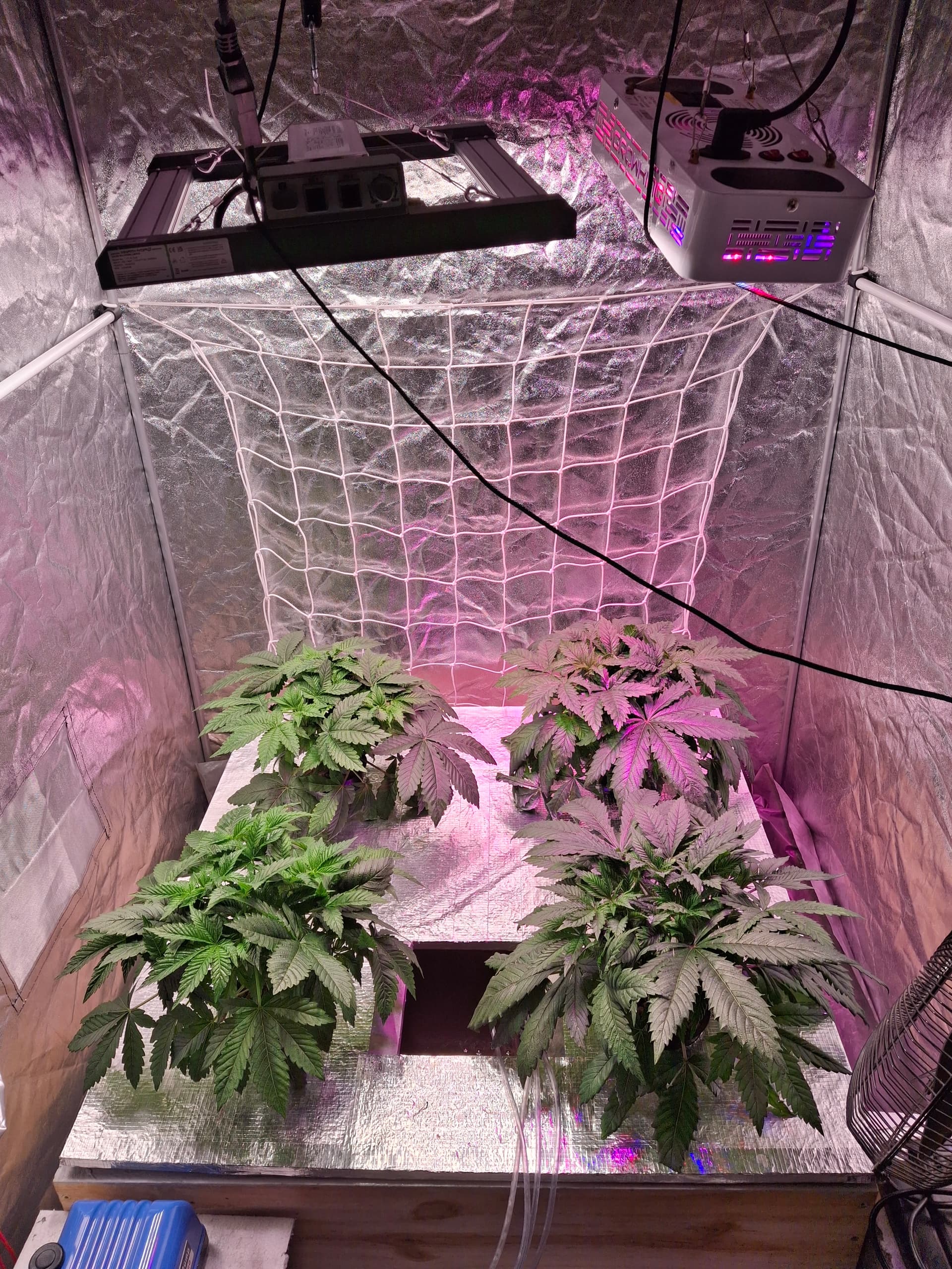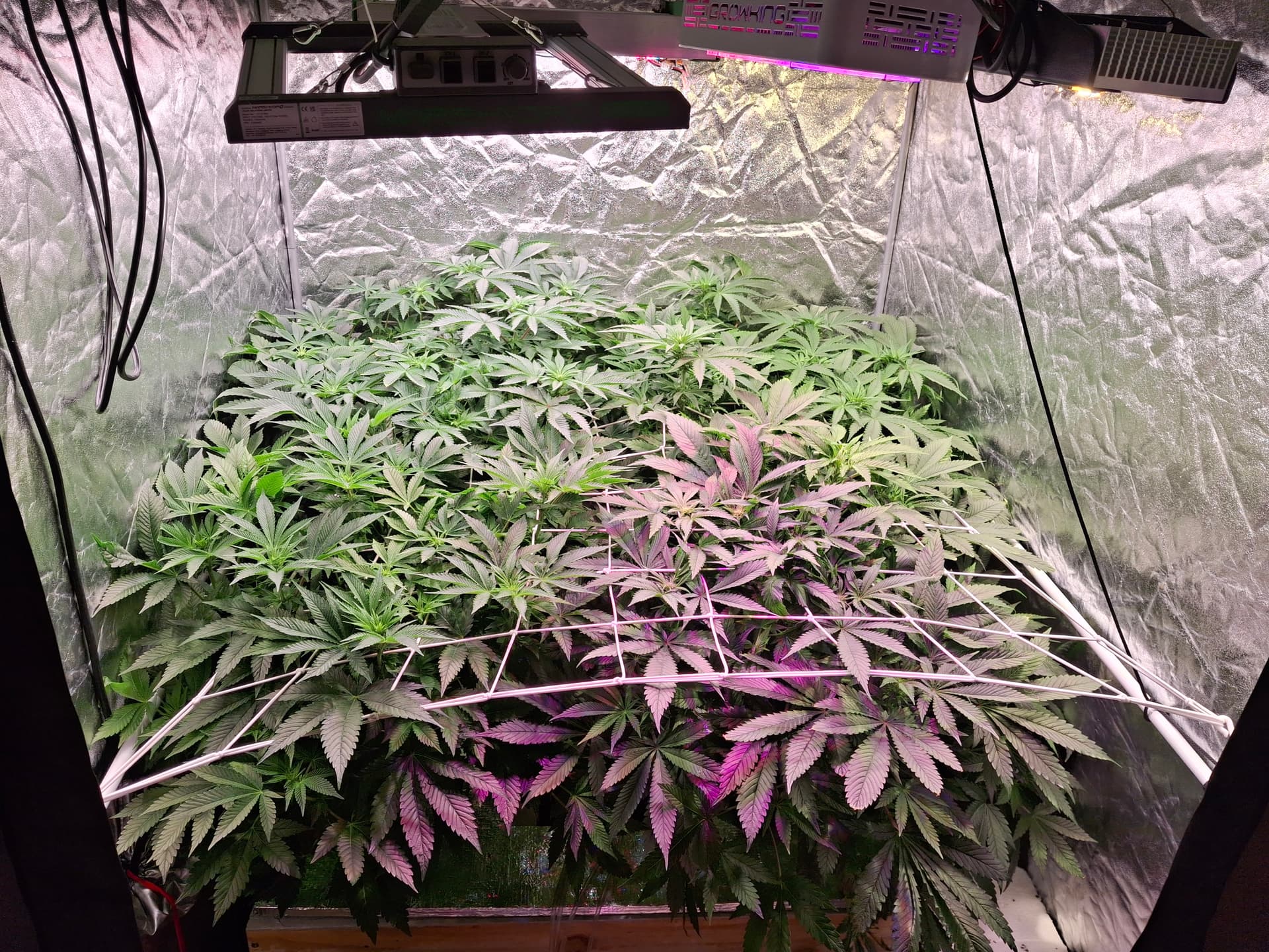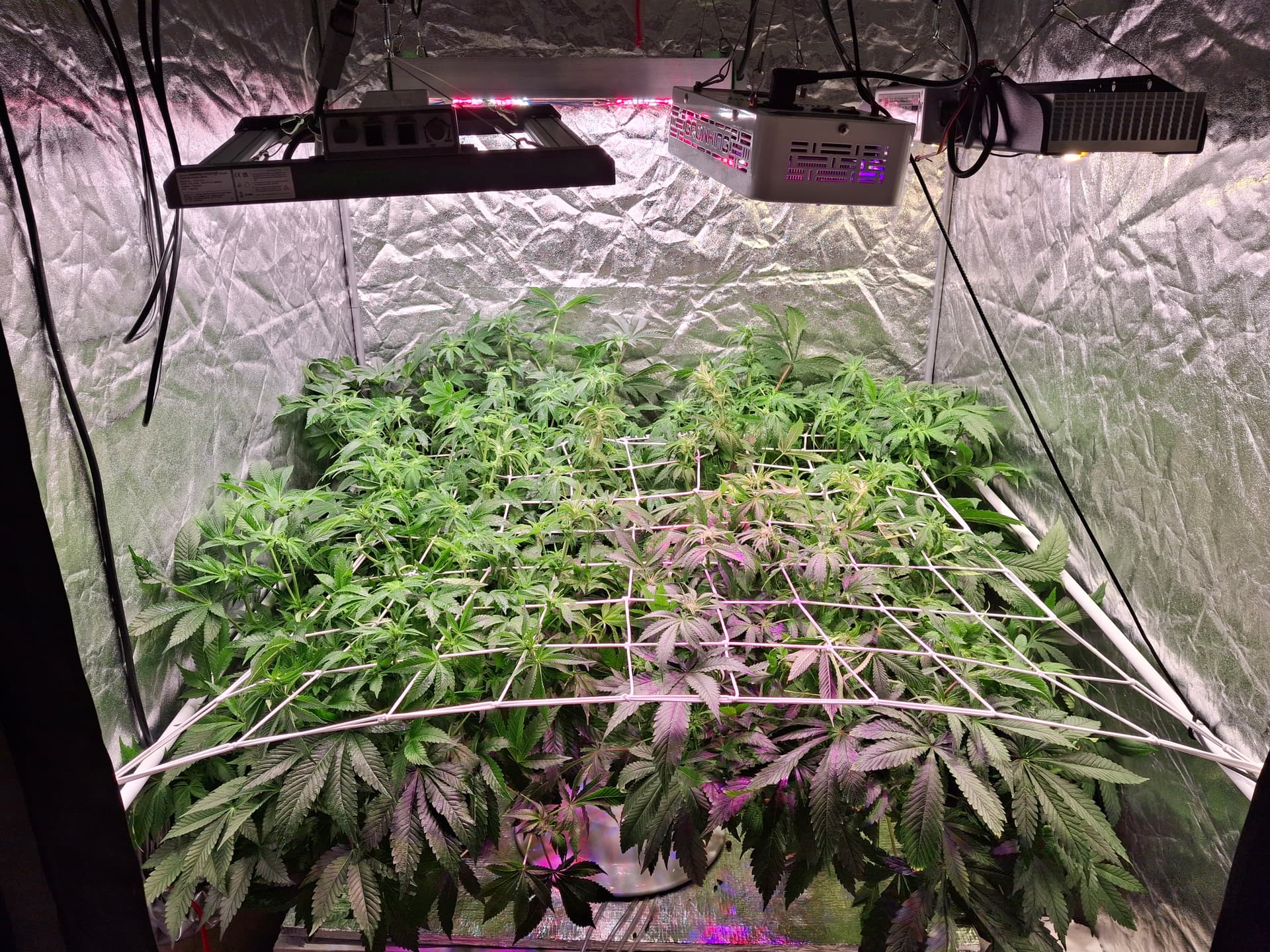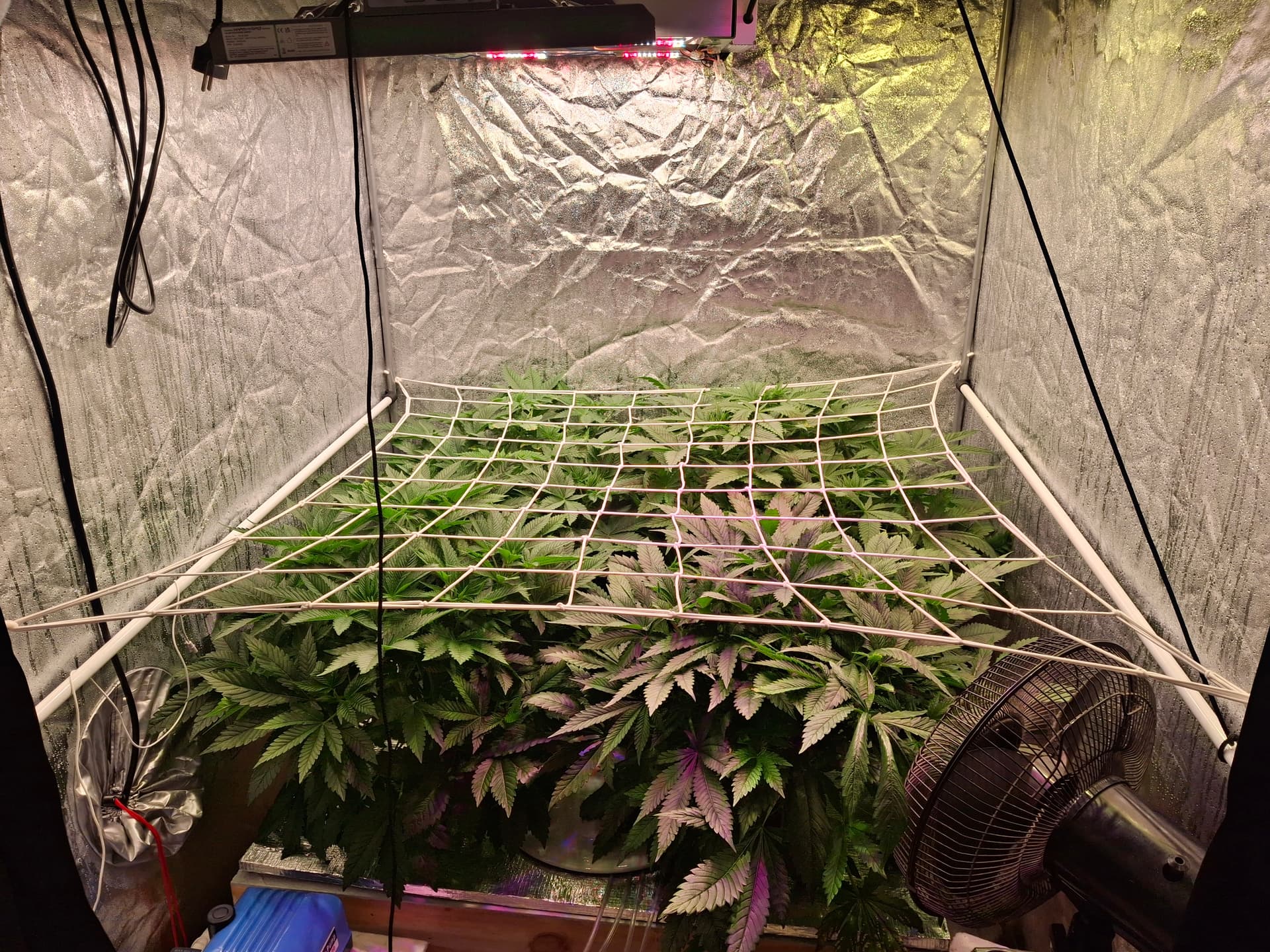 Habe das Netz schon mal übergelegt. Mit einflechten warte ich noch etwas, da ich durch die Sativa genetik noch von ca. zwei Wochen starken Wachstum sowie 3-4 Wochen Wachstum insgesamt ab jetzt ausgehe.