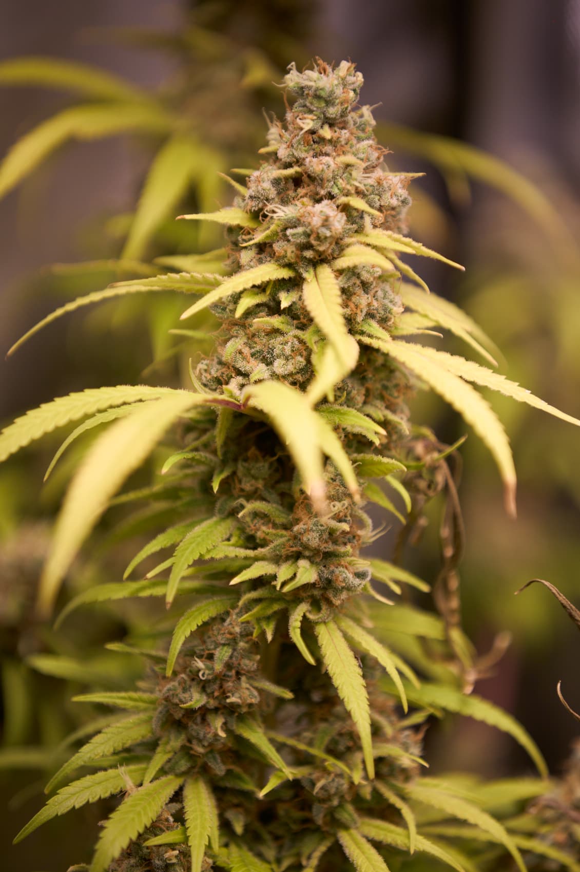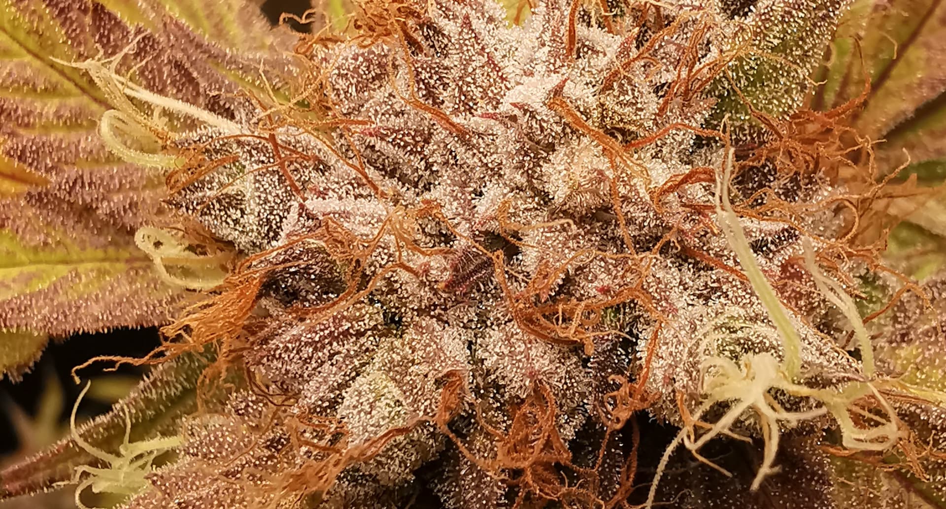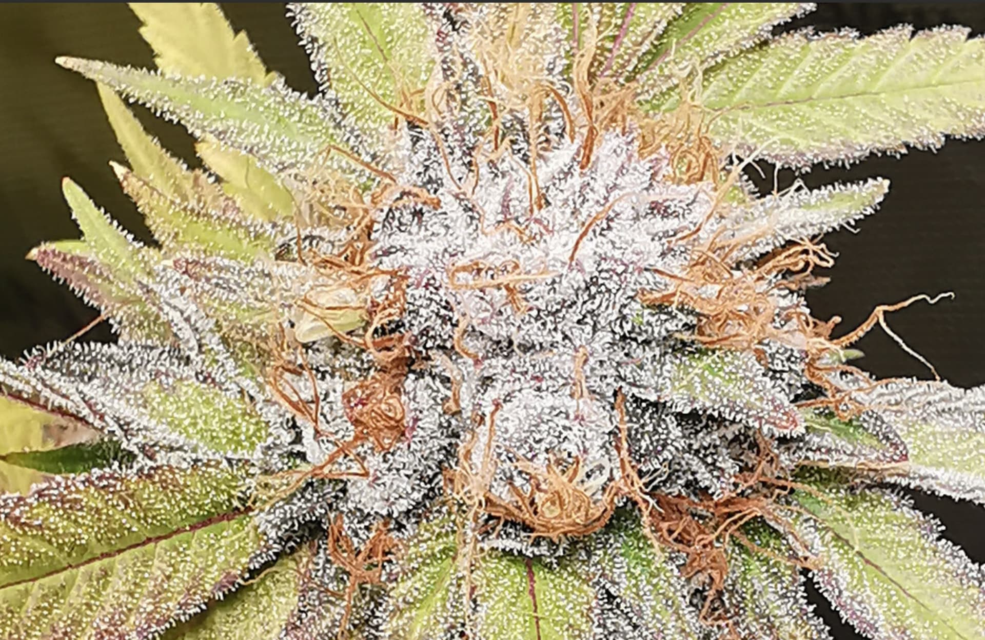 OG Kush (laut RQS 7-9 Wochen BlĂŒtezeit). Ist auch schon ordentlich herbstlich, jedoch sind noch keinerlei bernsteinfarbene Trichome zu sehen.