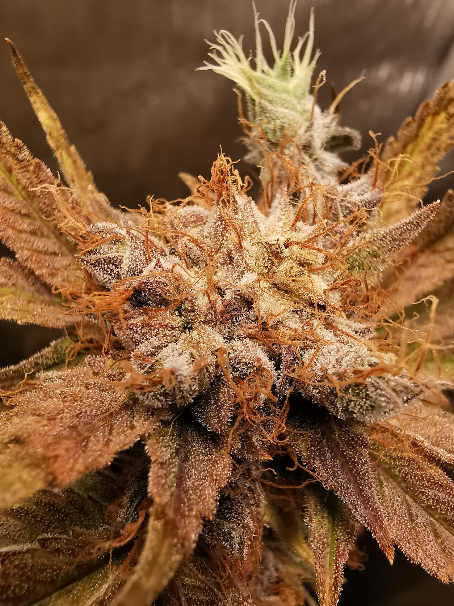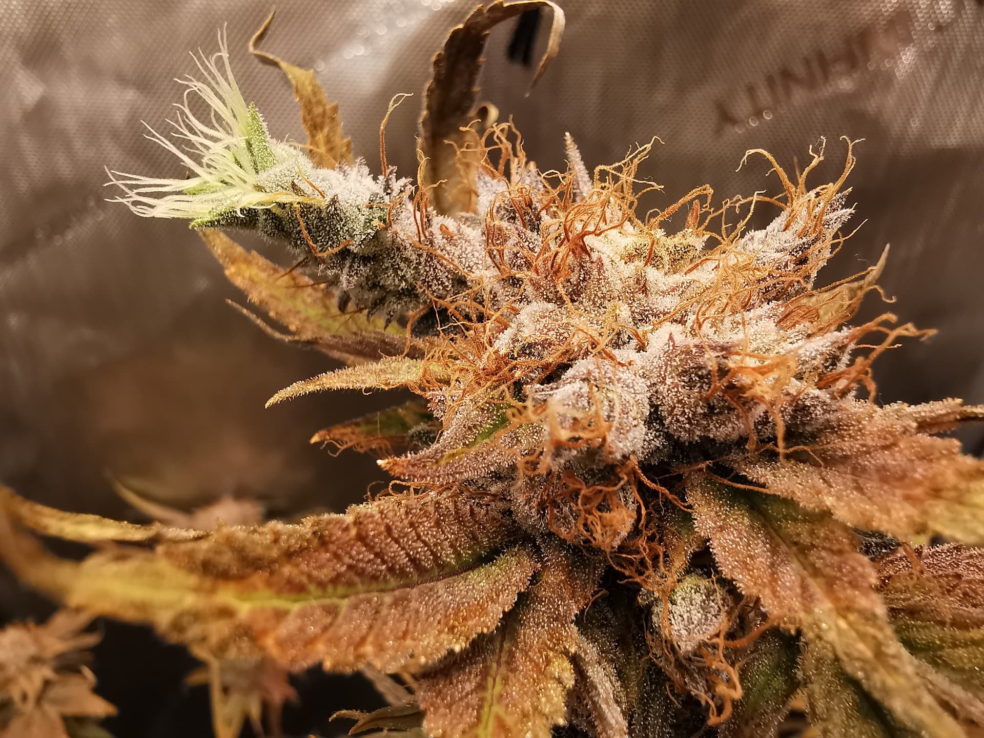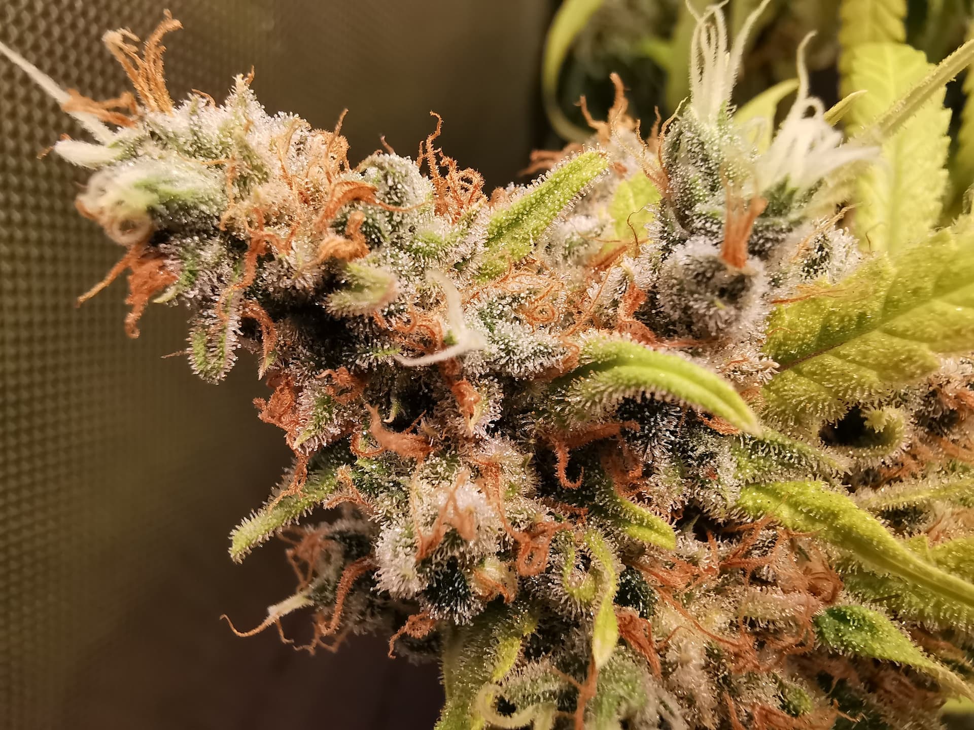 Denke heute werde ich ernten. Die Fotos sind allesamt von den oberen BlĂŒten. Schaut man etwas weiter unten sind die Trichome noch nicht so gut ausgebildet wie oben, aber das ist ja denke ich normal.