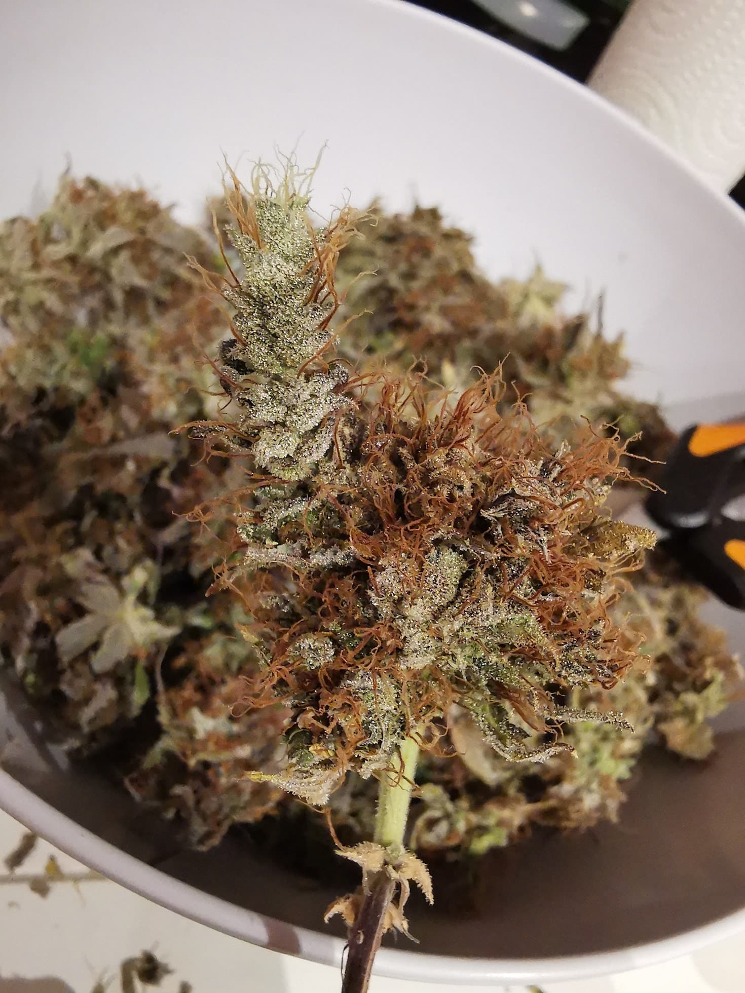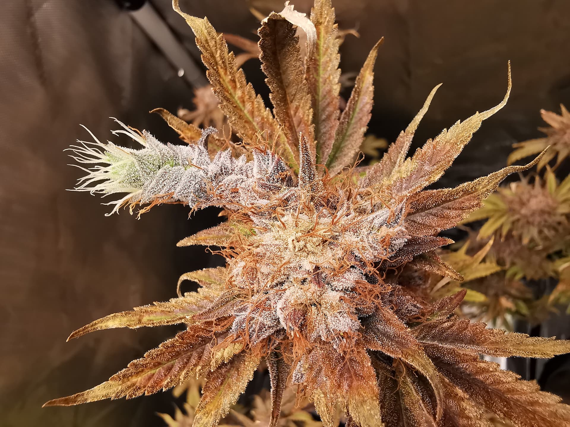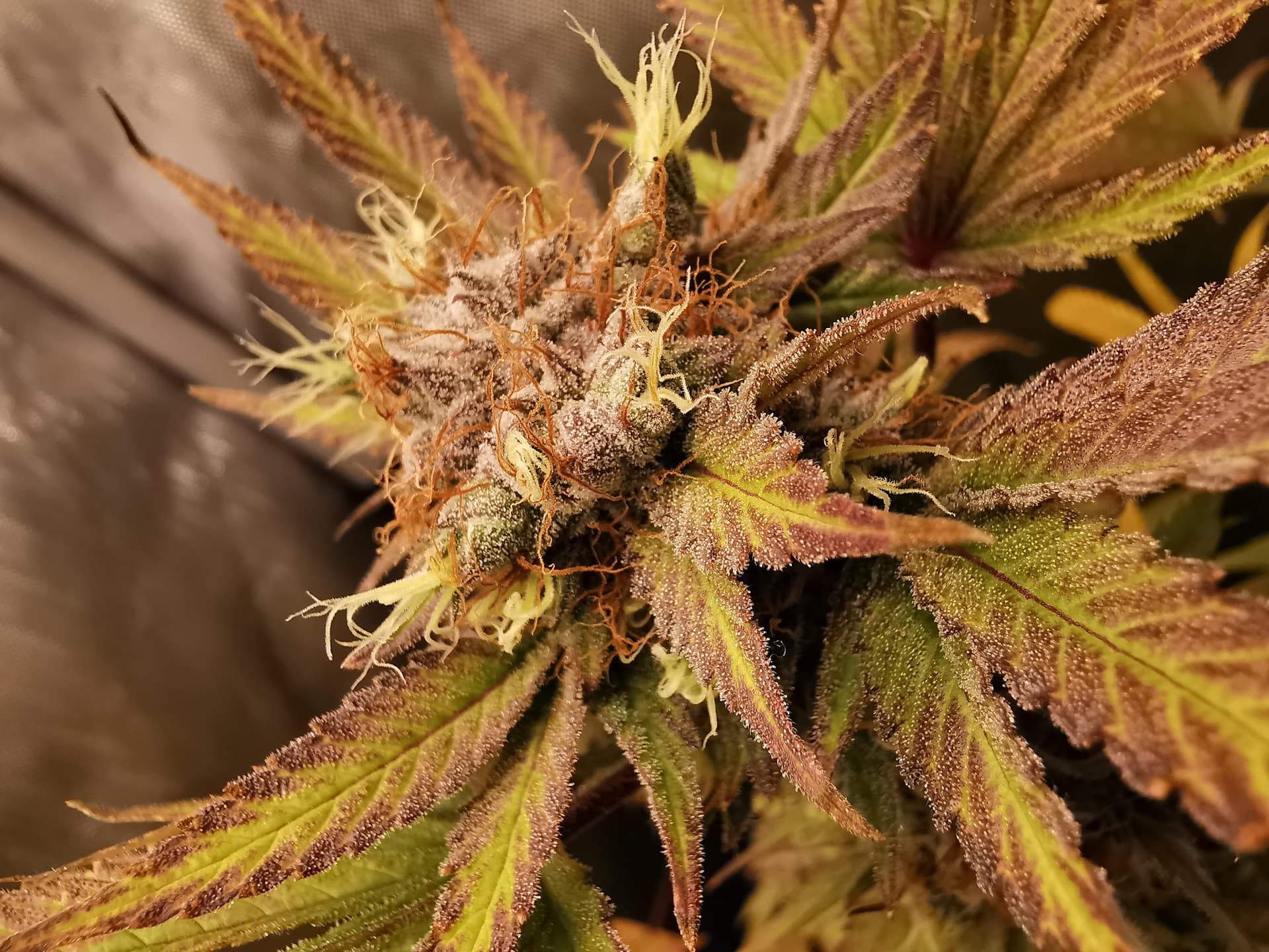 Denke heute werde ich ernten. Die Fotos sind allesamt von den oberen BlĂŒten. Schaut man etwas weiter unten sind die Trichome noch nicht so gut ausgebildet wie oben, aber das ist ja denke ich normal.