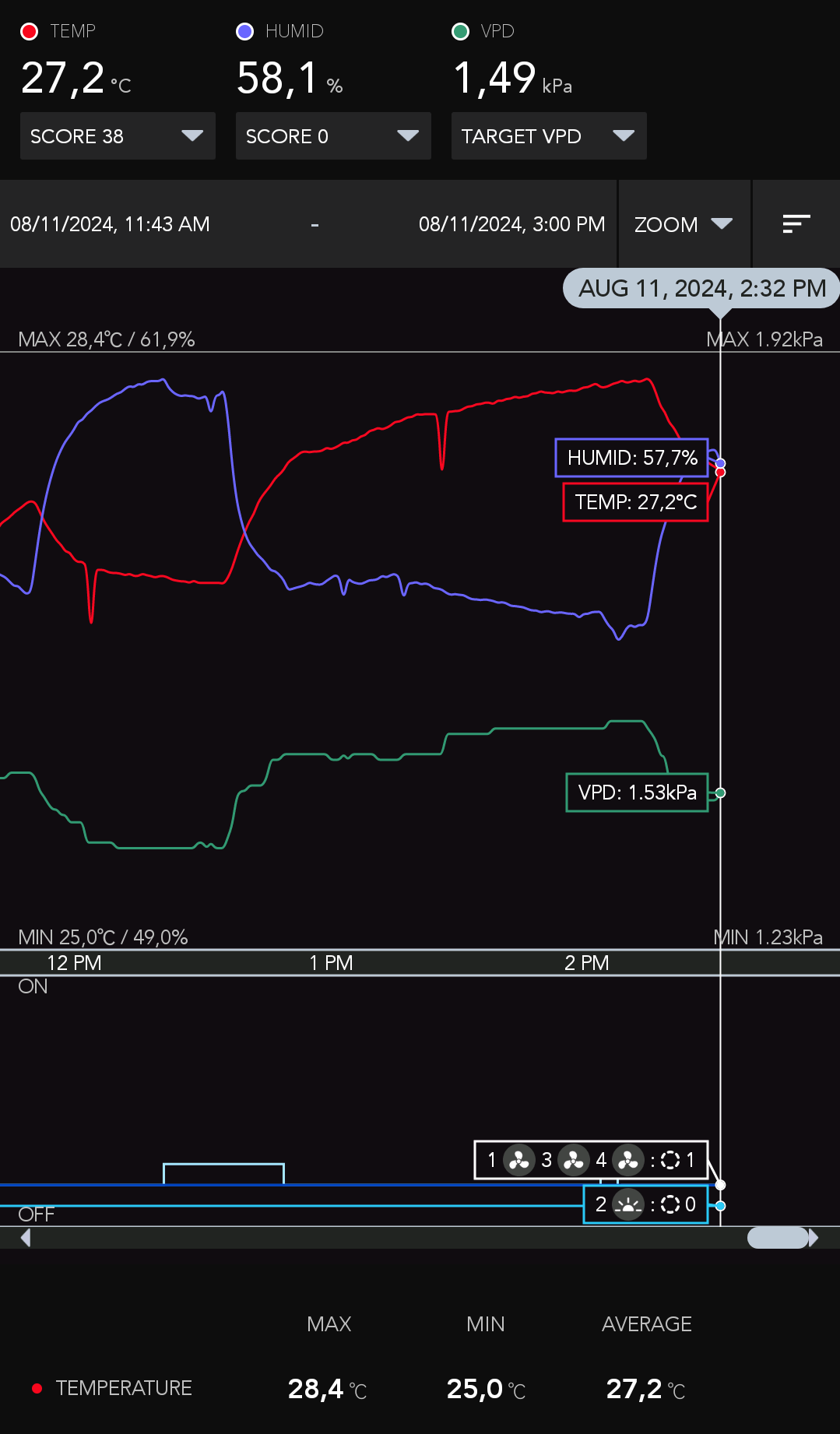 Passt das so? Venti (Stufe 1/10) sowie Abluft lĂ€uft dauerhaft, so dass ich möglichst 18-21 Grad und eine RLF von 55% habe. Aktuell sind es leider bis zu 26-27 Grad was die nĂ€chsten Tage wohl auch so bleiben wirdâŠ