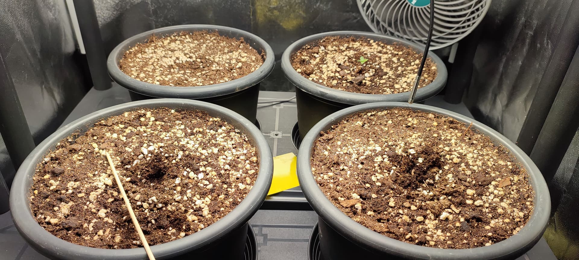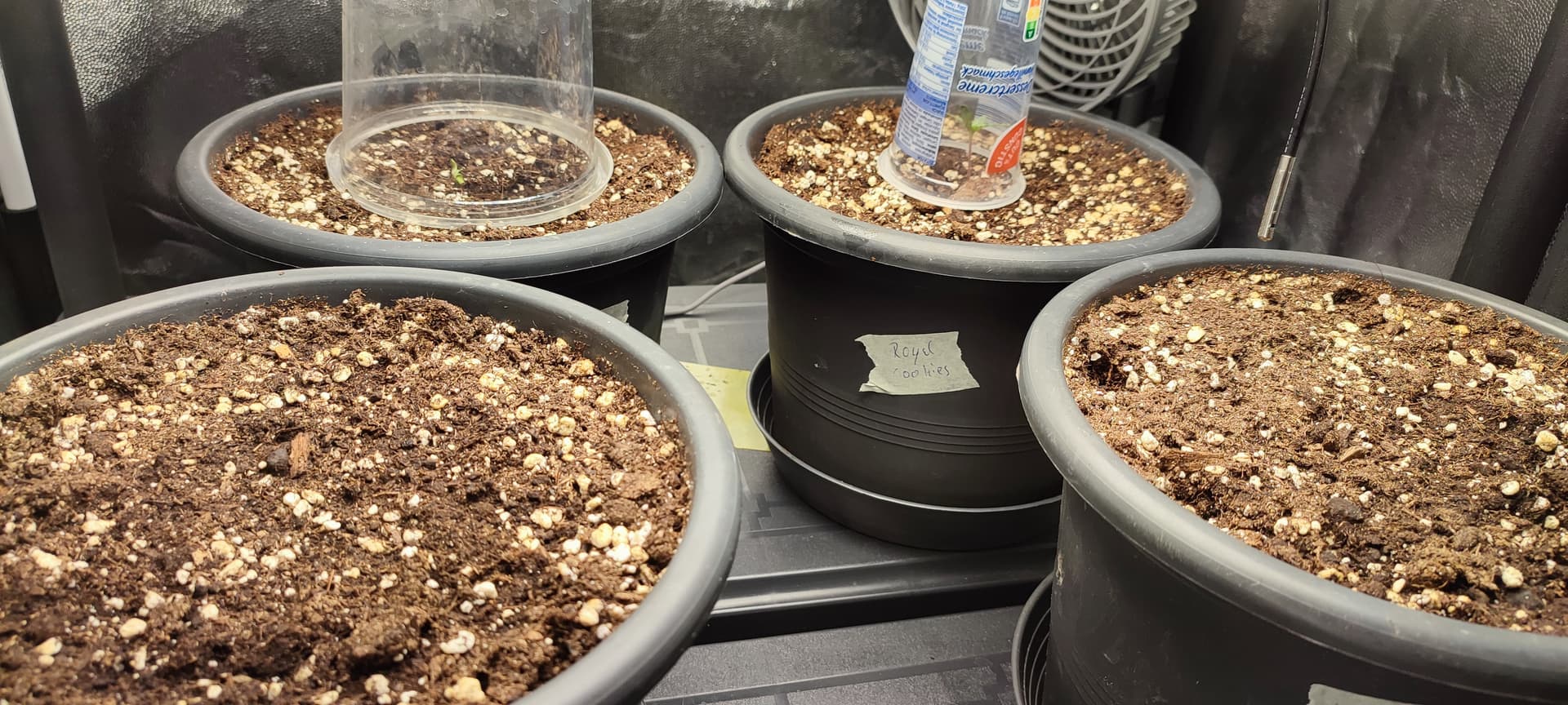 Töpfe sind diesmal noch etwas kleiner, wird wohl richtig stressiges gießen, also 3x komplette Nährlösung statt 1-2x und rest Wasser pur