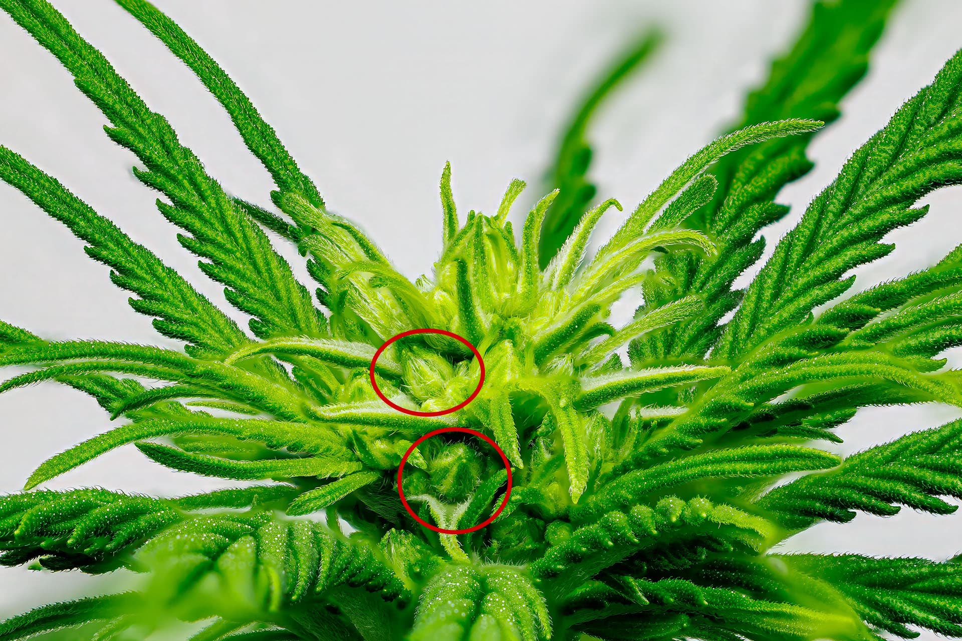 Das designierte Männchen bildet die ersten Pollensäcke aus. Die STS Behandlung war wohl erfolgreich. (die 3. und letzte Behandlung war ja vor 4 Tagen). Auch schön zu sehen, wie sich die Trichome bilden.