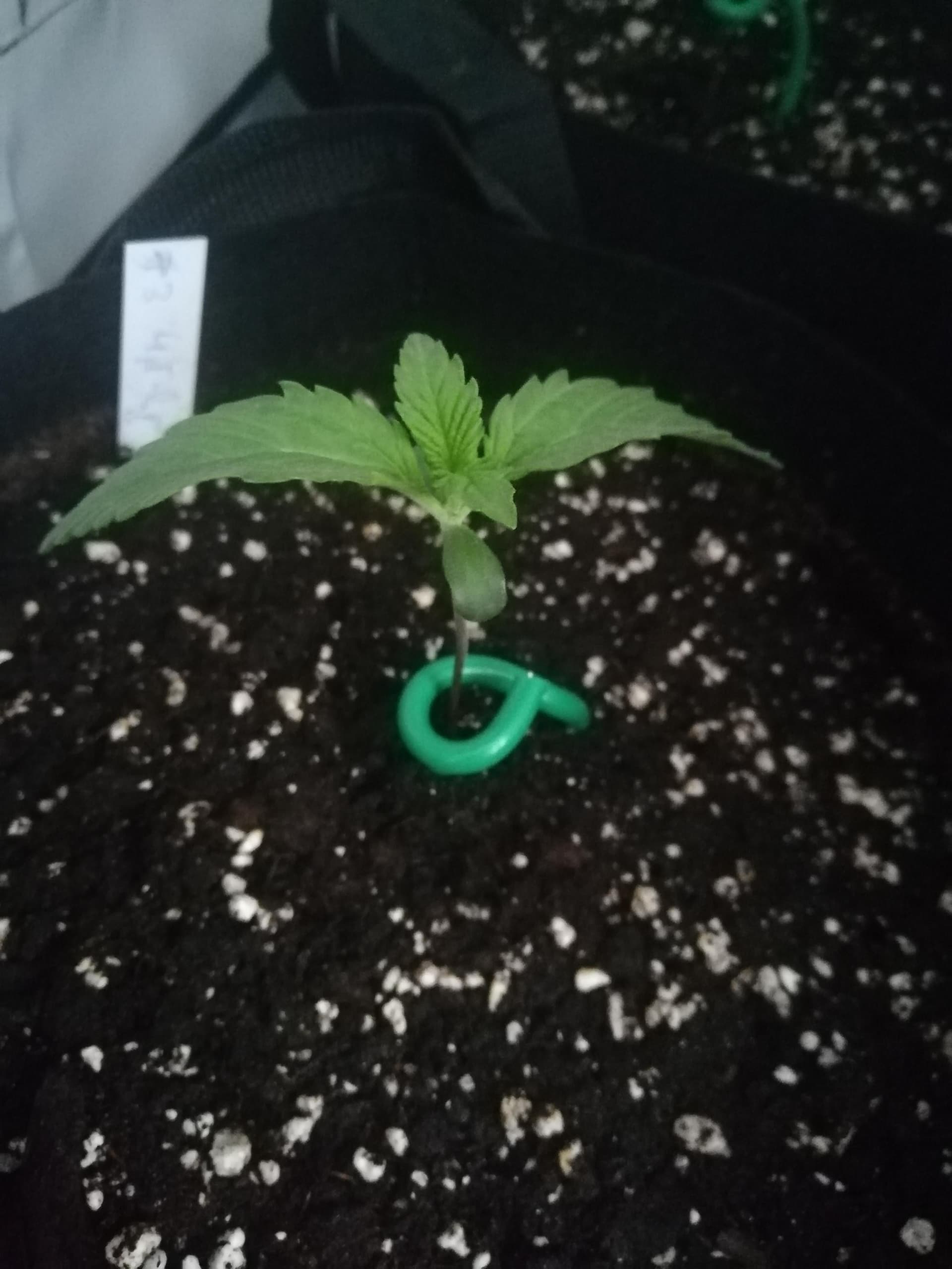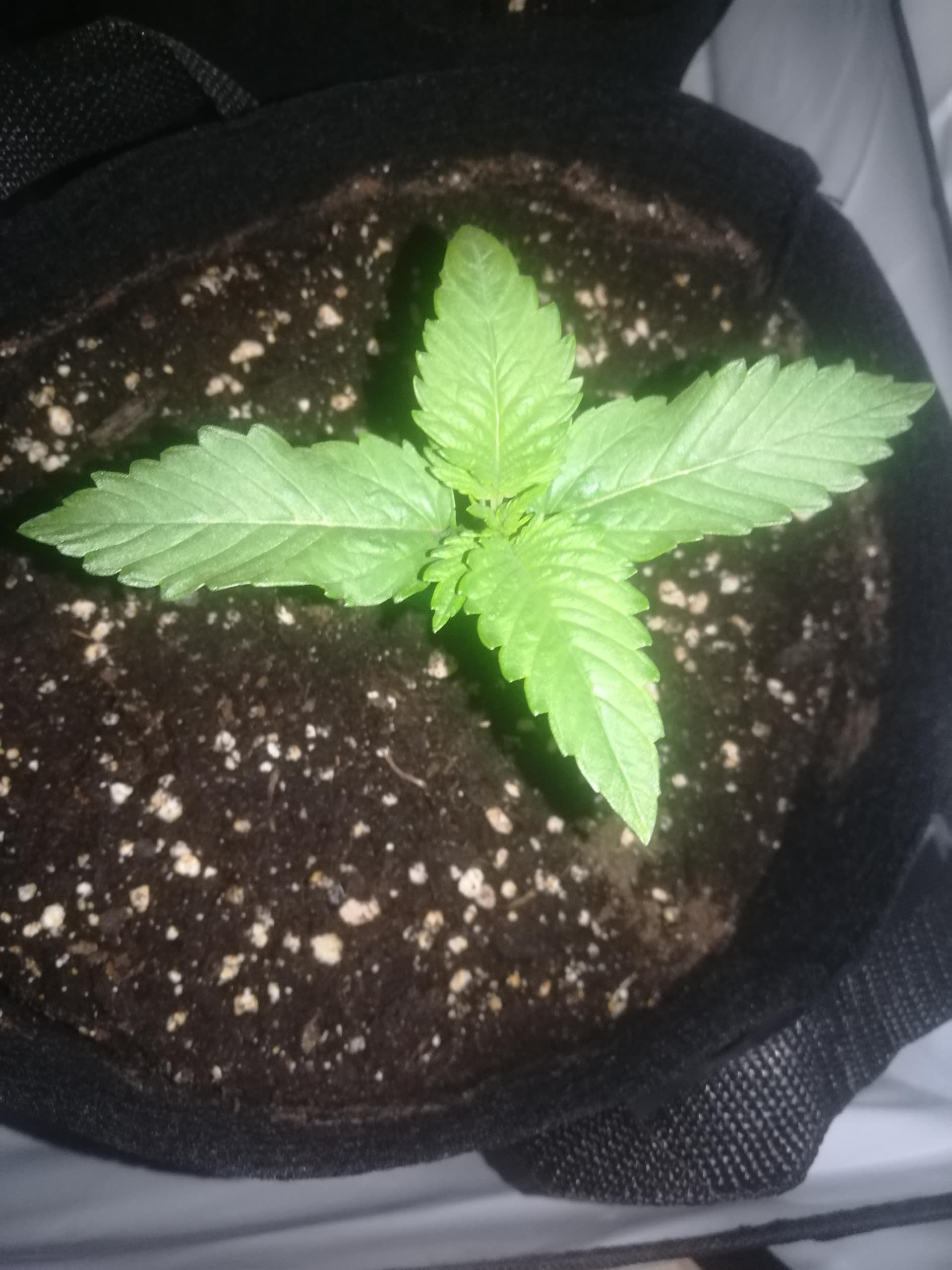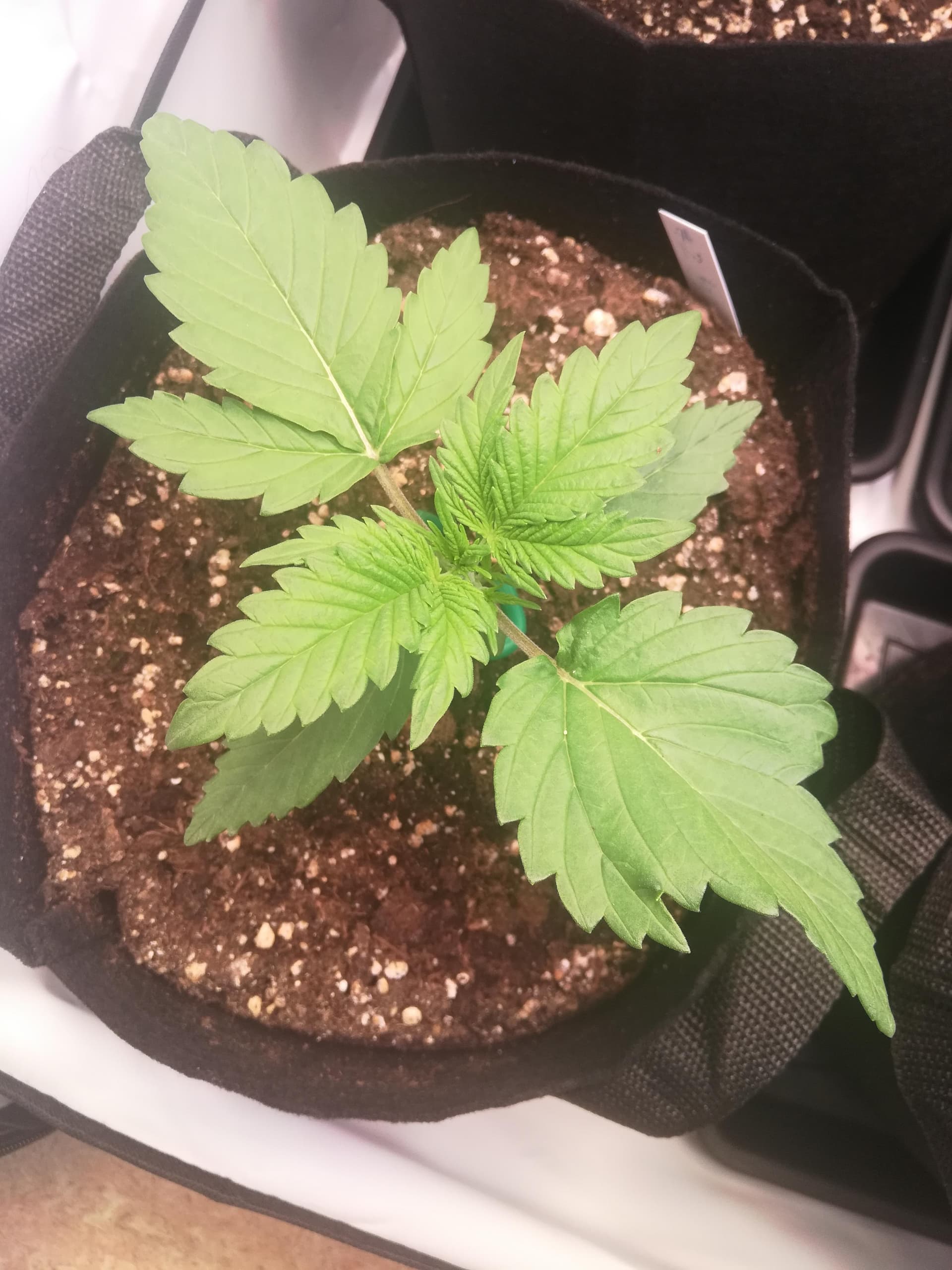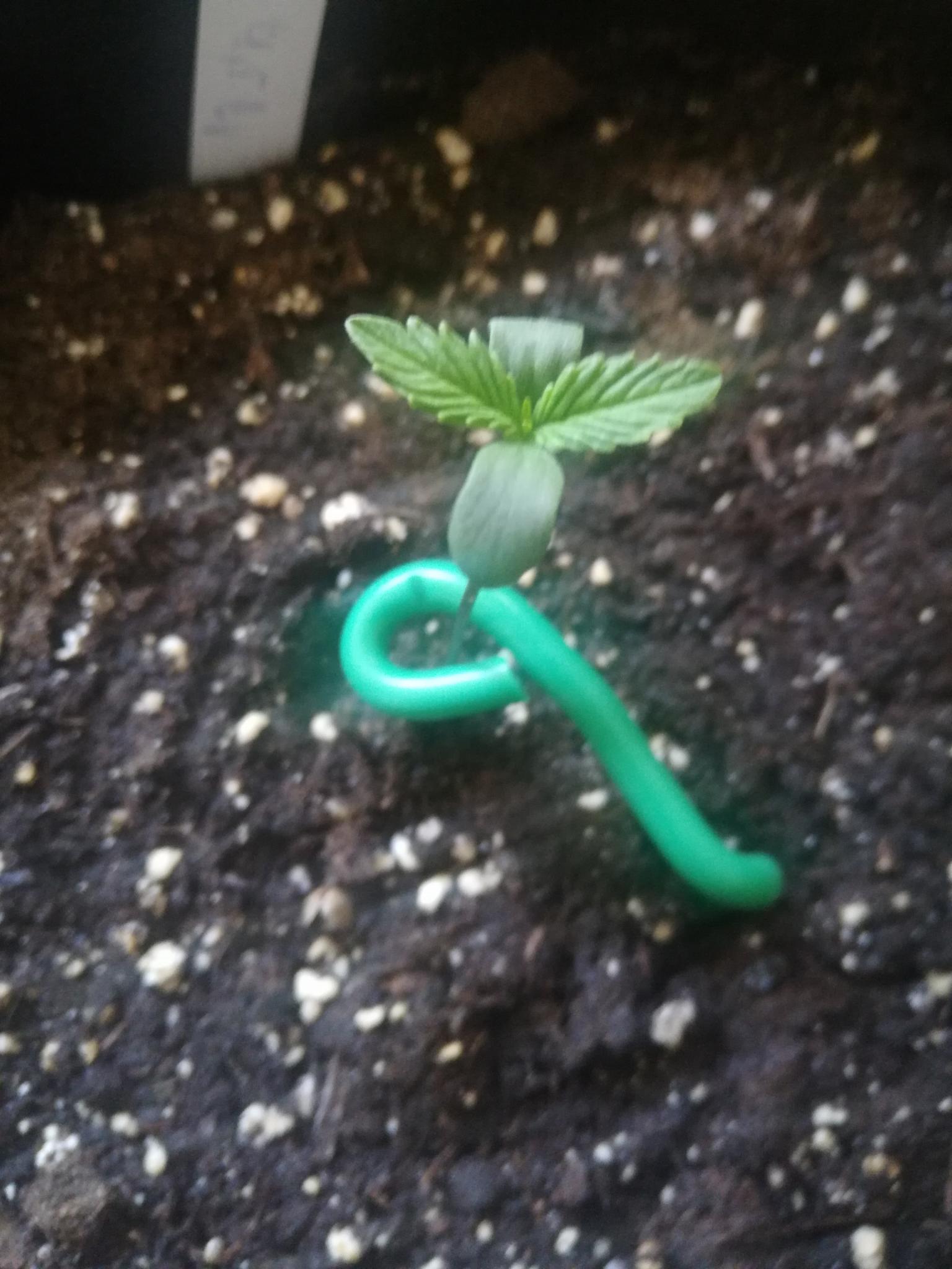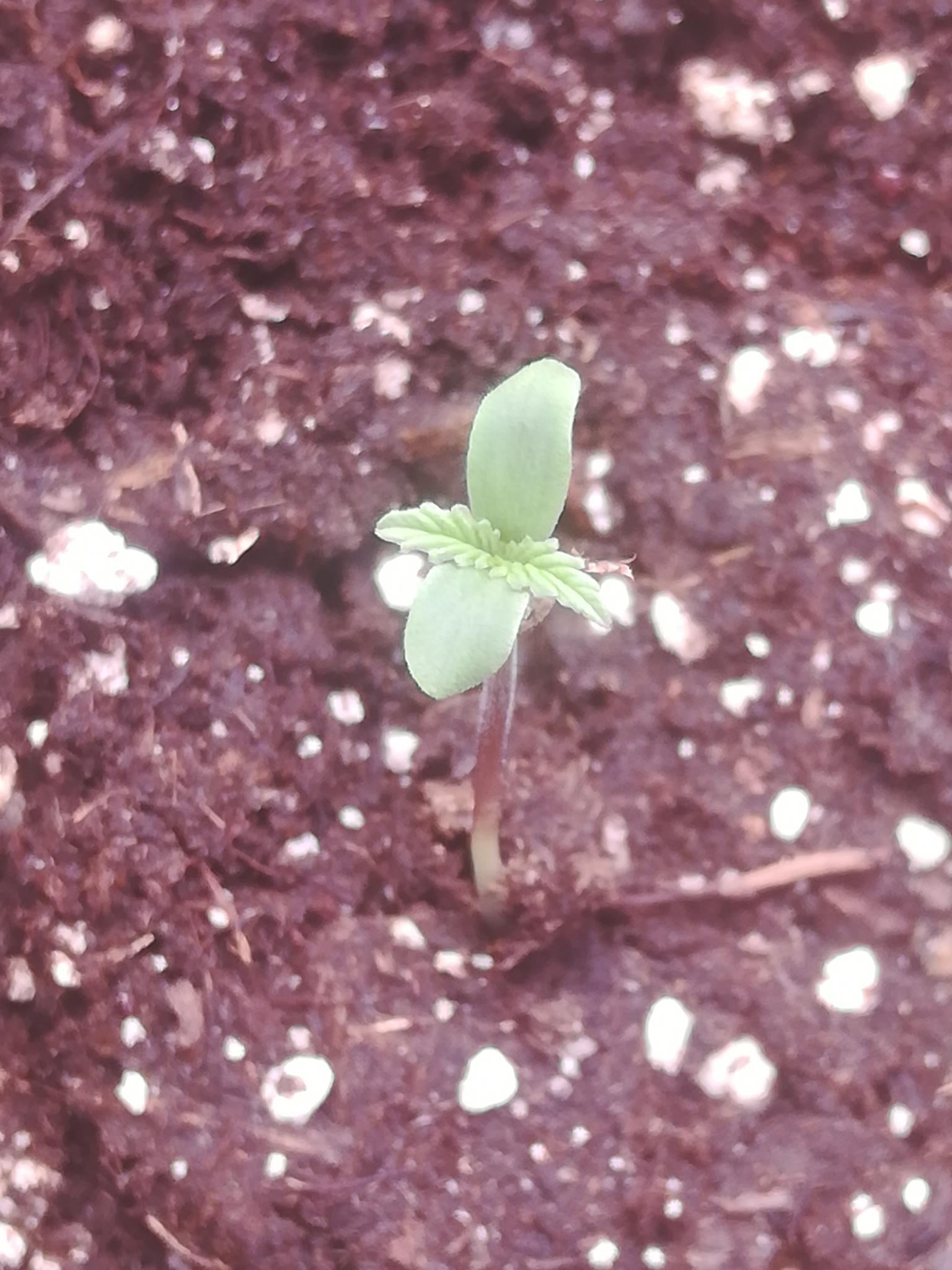 Das erste paar gezackte Blätter zeigt sich. Die Plastikbecher wurden entfernt da mir ein erfahrener Grower in einem anderen Forum gesagt hatte, dass das nicht mehr notwendig sei.