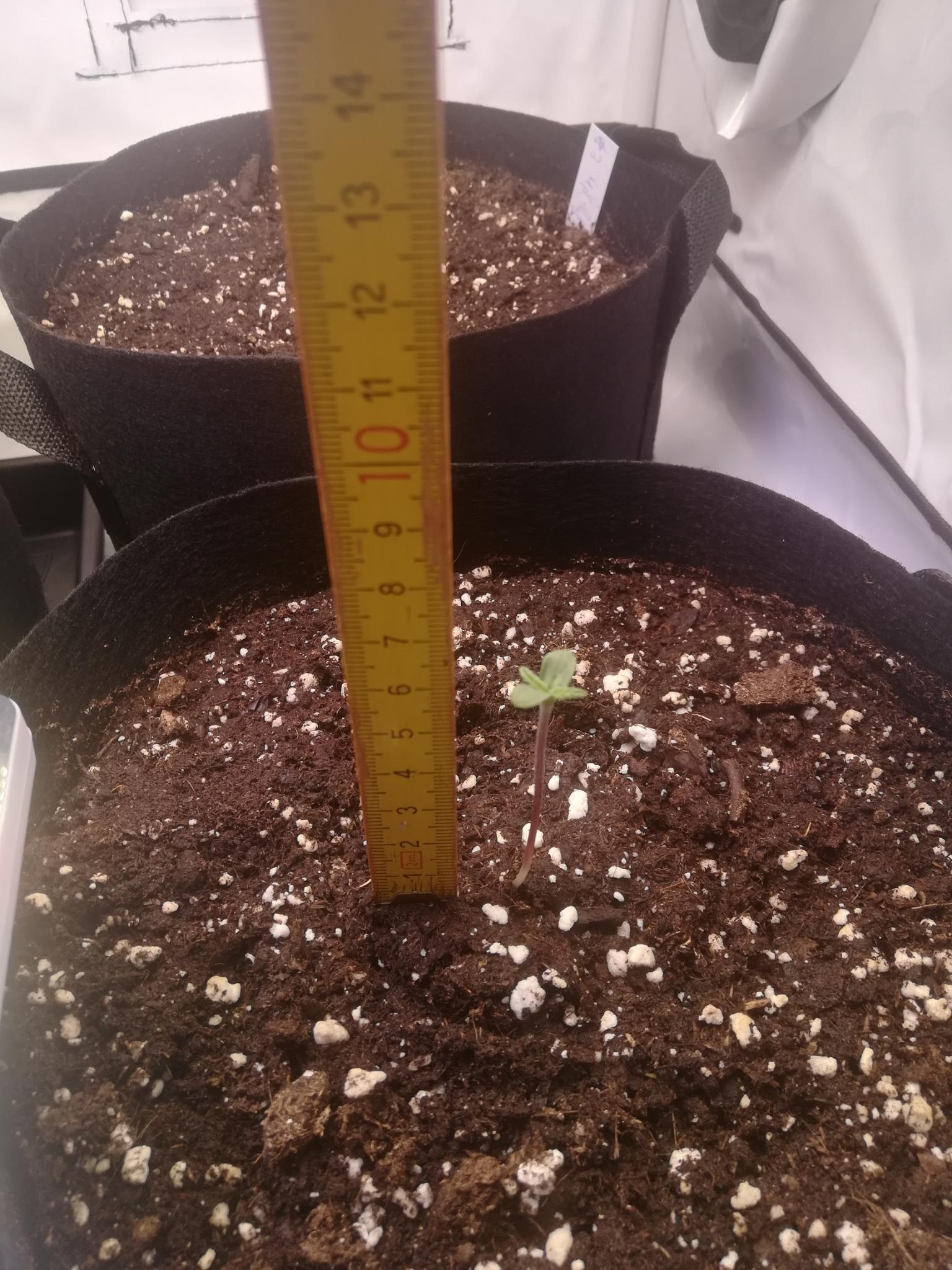 Die Sämlinge scheinen die hohe Lichtintensität bisher problemlos zu vertragen. Das ist für mich überraschend weil überall im Internet von max. 300 PPFD die Rede ist. Vielleicht ist das auch eine Frage des Strains und/oder des Lichtspektrums?