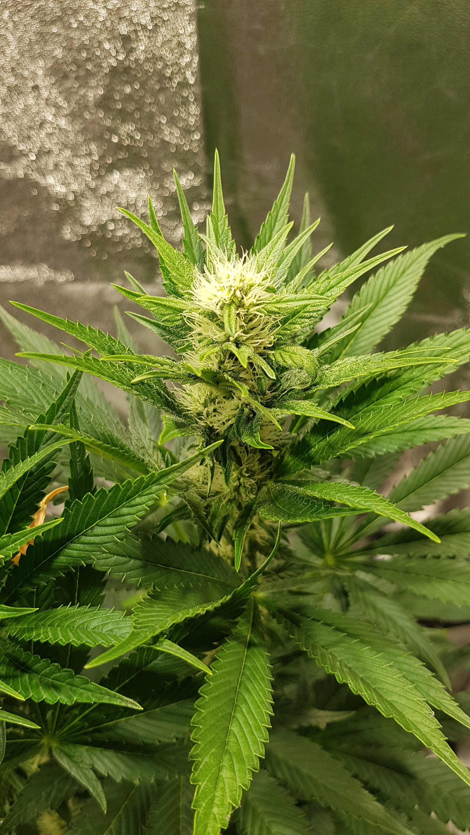 Die 2 mit den dickeren Blüten sind die Green Gelato, die mit kleiner Blüte die Franco’s Lemon Cheese, welche länger bräuchten um in die Blüte zu kommen. Die Gelato haben quasi 20 Tage Vorsprung.