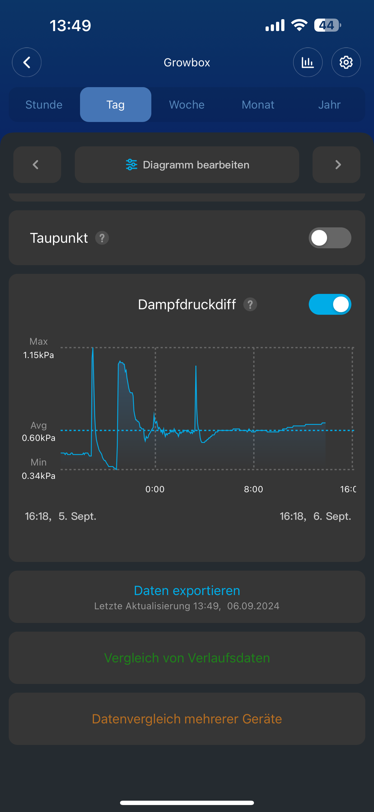der VPD-Wert beläuft sich aktuell immer zwischen 0,4 kPa - 0,6 kPa.