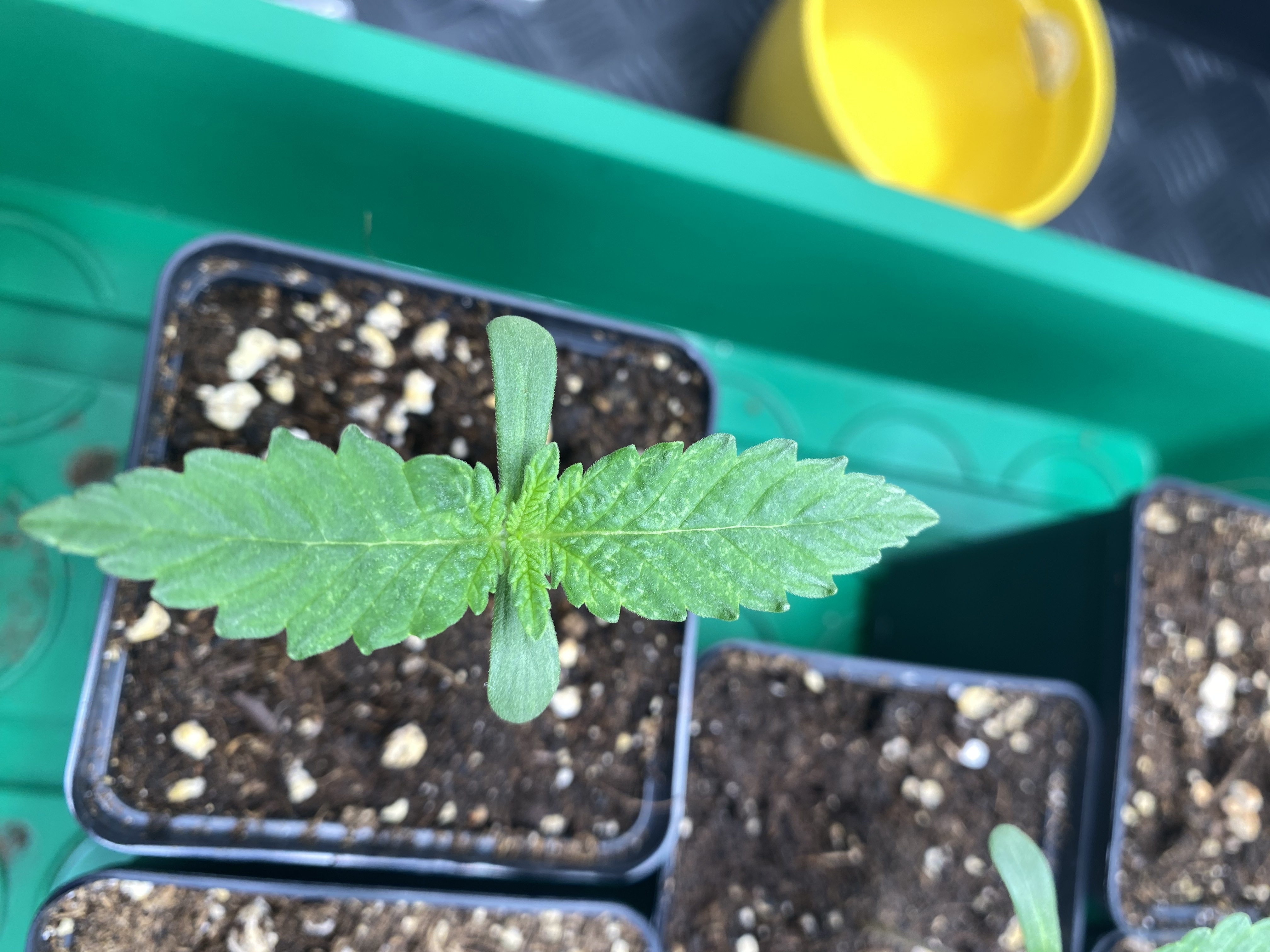 Hab die 5. Sprösslinge auf Bio Bizz Light Mix gebettet in 0,25l Töpfen.