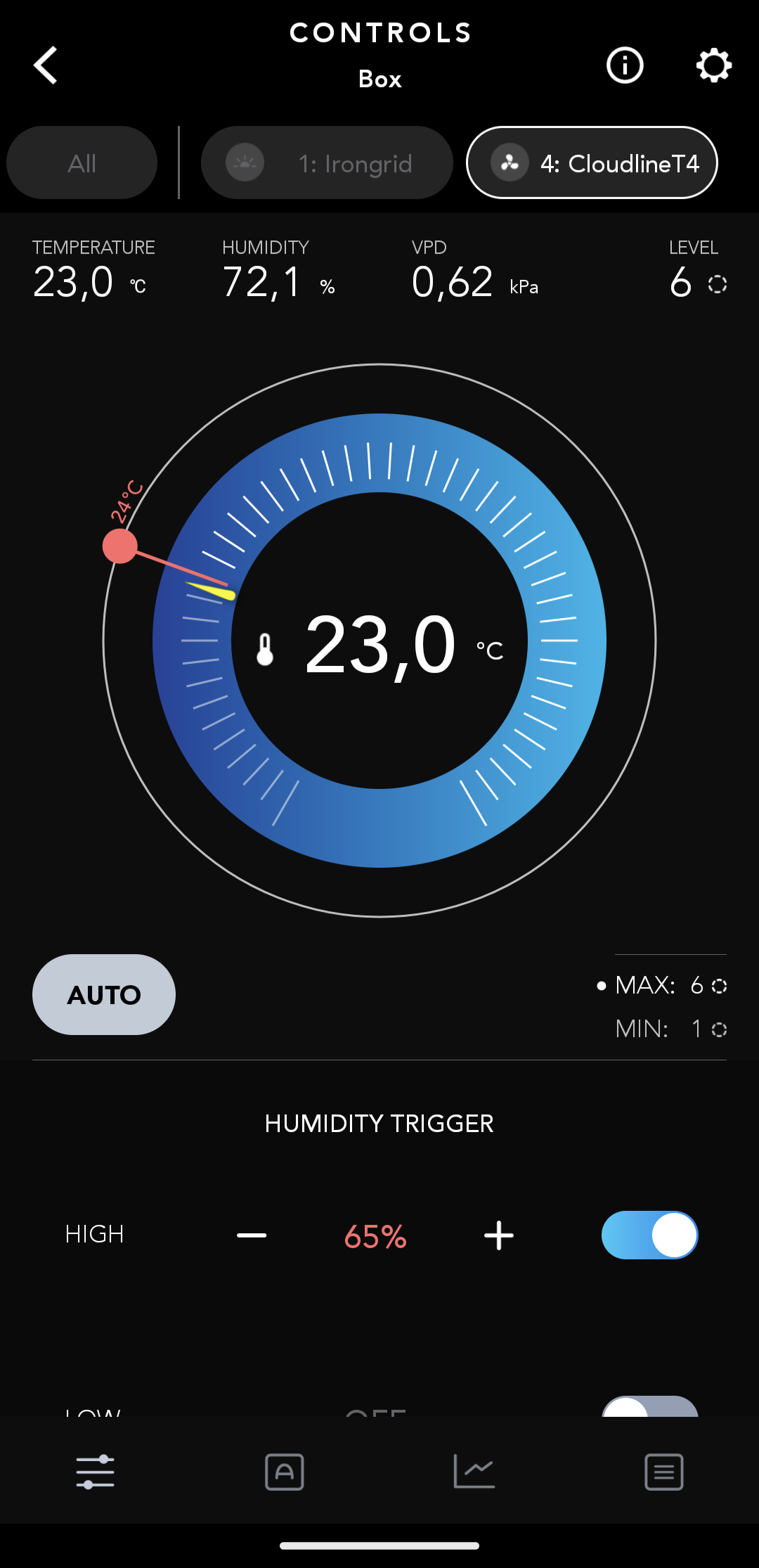 Respekt der läuft auf stufe 6. In der phase sind 65 bis 70% rlf ned so schlimm. Klappts bei dir via vpd zum ansteuern . Habs ein paar mal mit vpd geführt probiert. Ging nen halben tag gut . Danach nur noch unlogische aktionen . Zb lüfter hoch obwohl rlf eh schon im keller war.