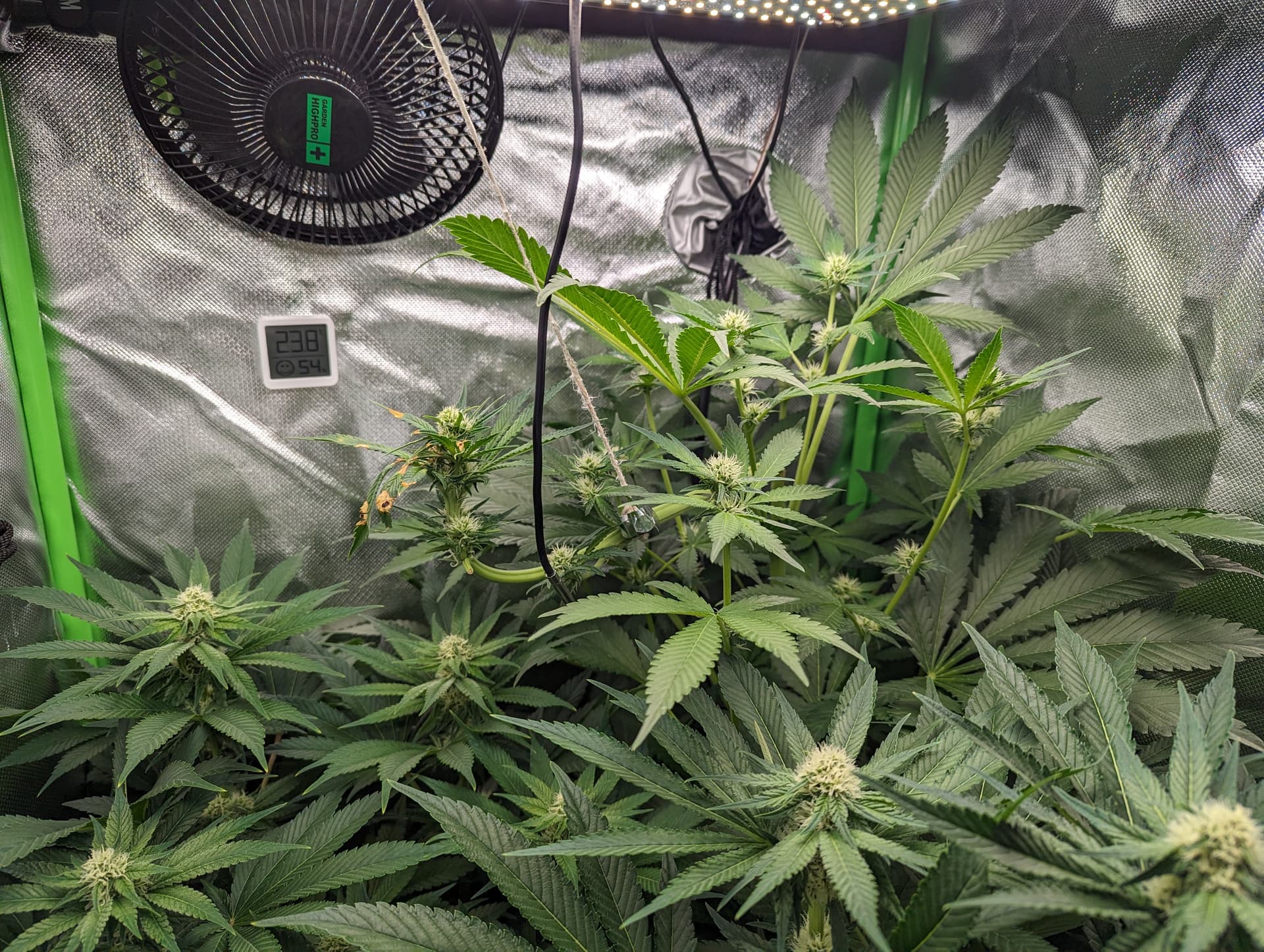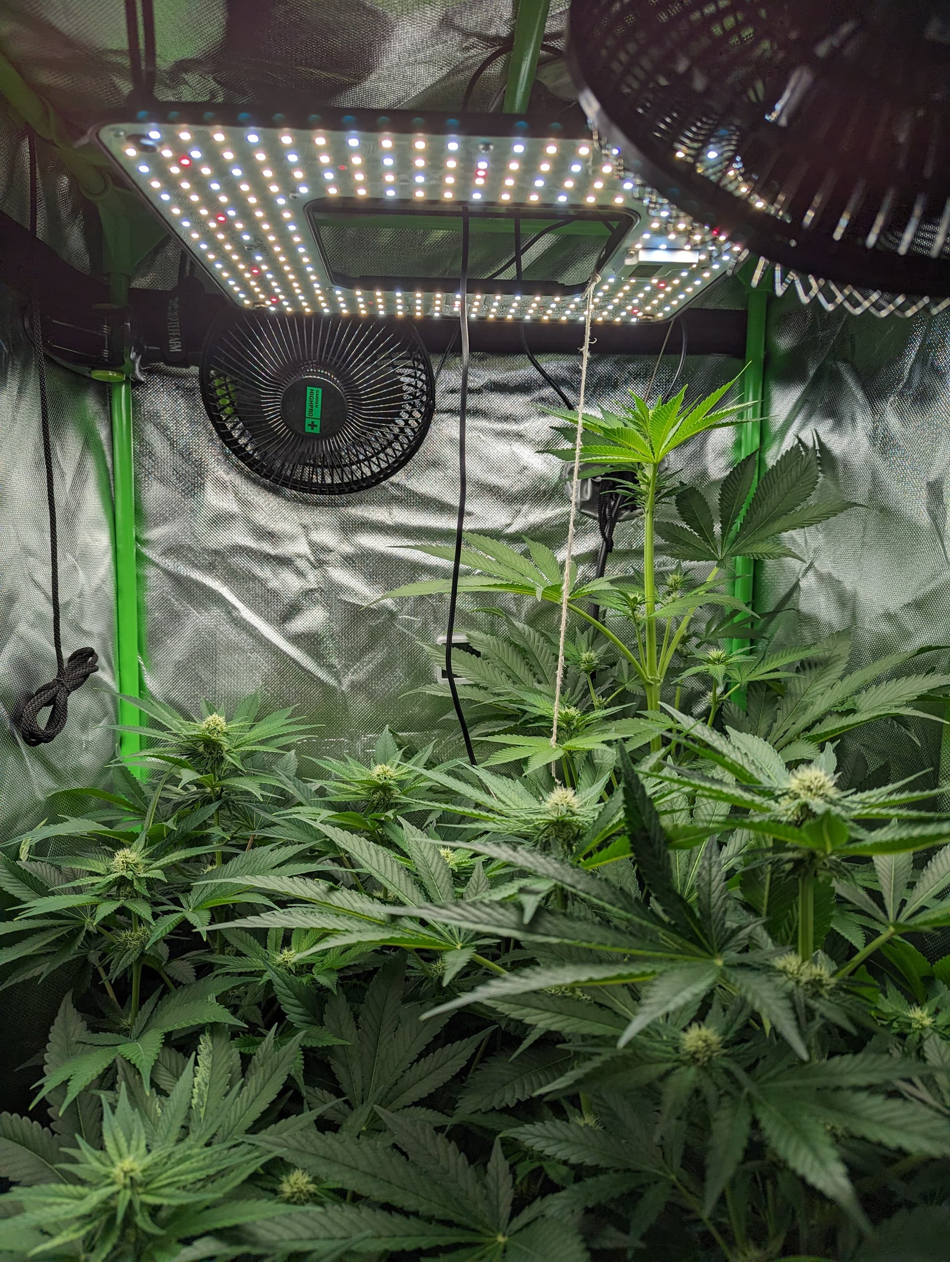 Mit einem SCROG und LST könntest du noch ein paar Zentimeter rausholen (mit einem zweiten weiter unten sogar noch mehr, aber da kommt jetzt der verrückte Wissenschaftler in mir raus ;-)).
