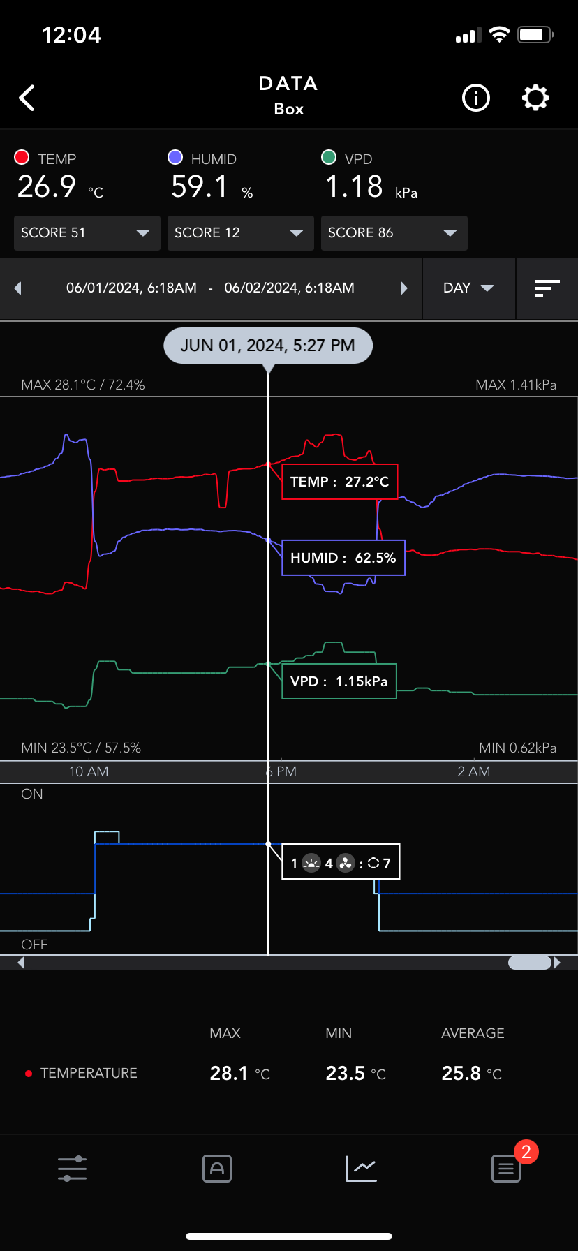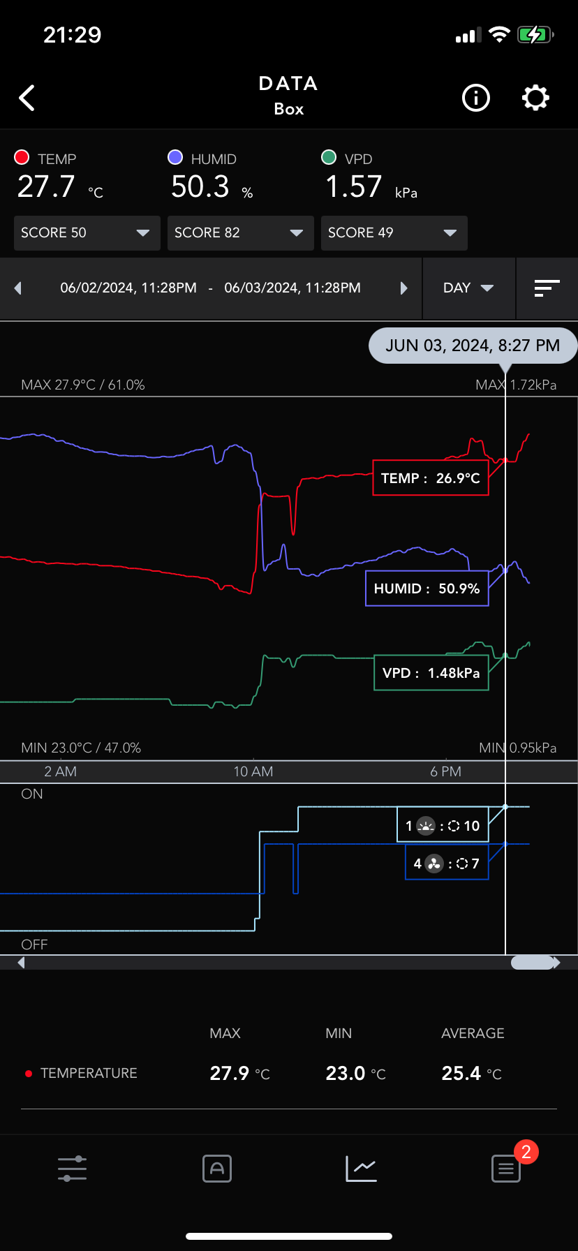 Ich seh zu das ich nicht über 27° komme und Regel die led entsprechend den Temperaturen über den Tag: