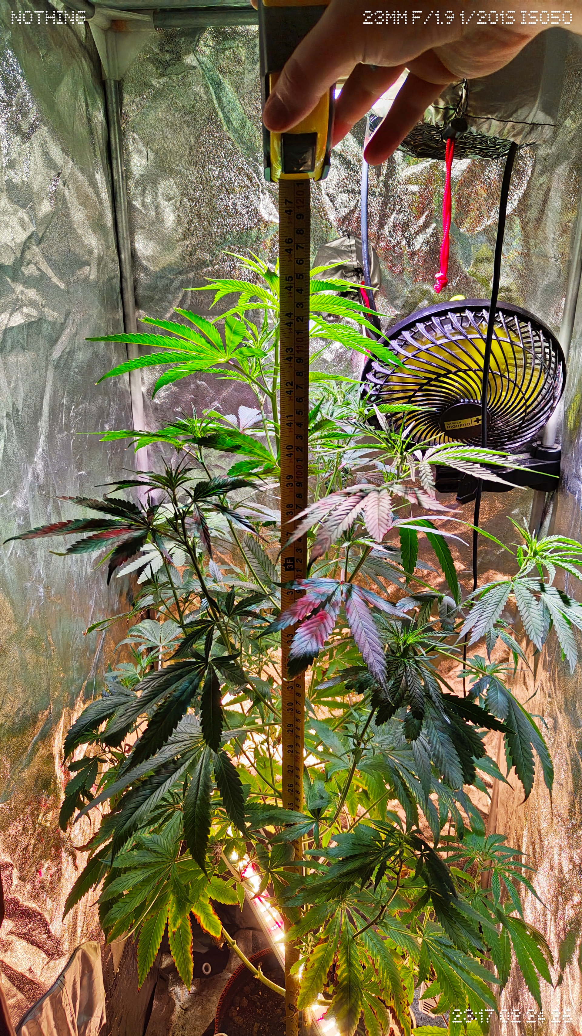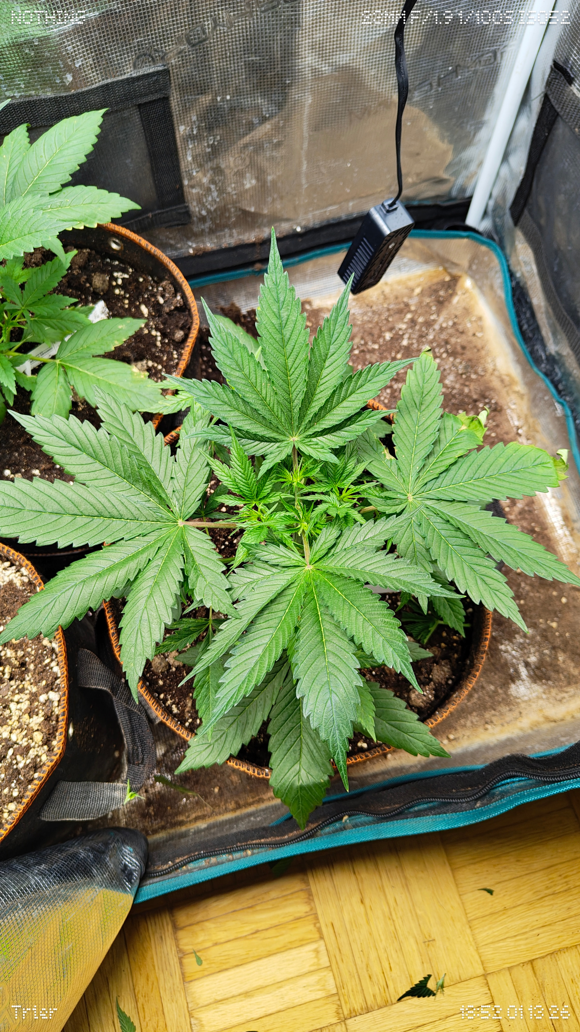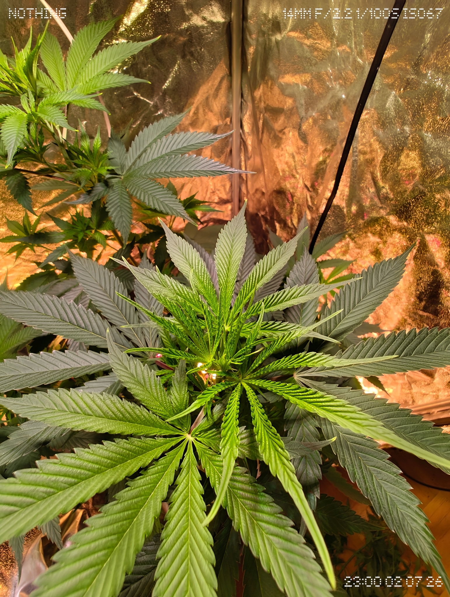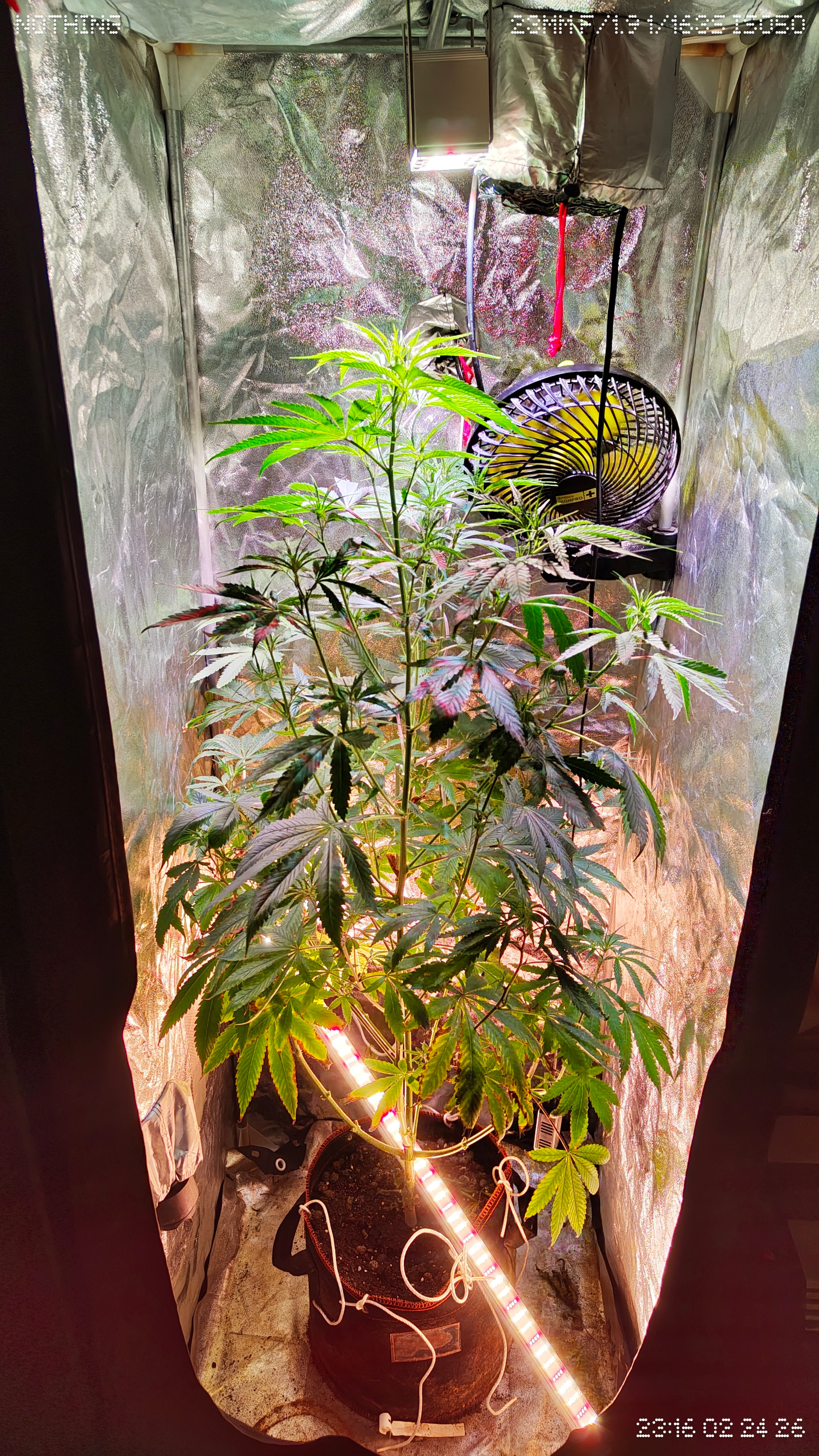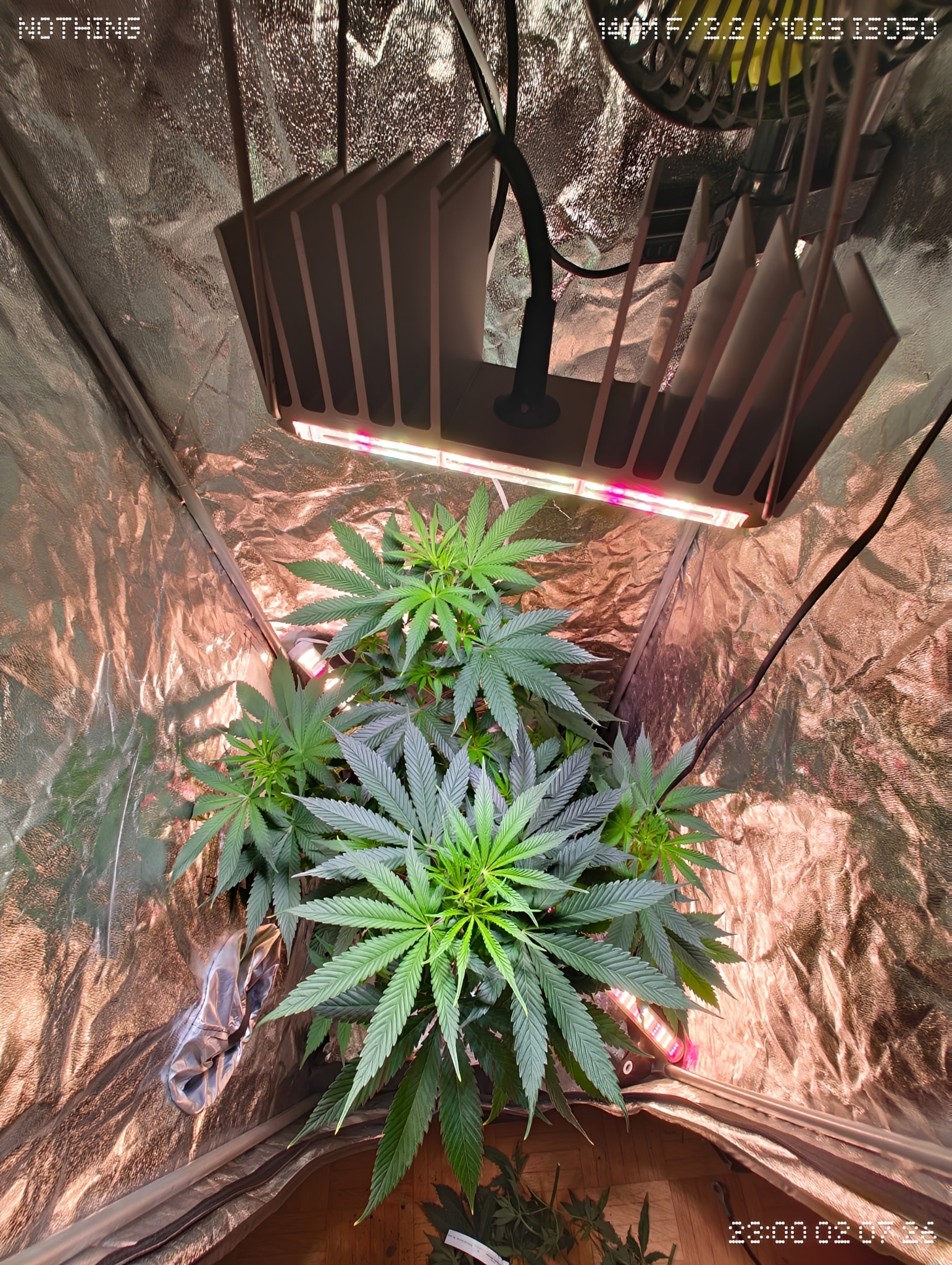 Ich habe ein paar Tage abgewartet und siehe da, sie sieht immernoch top aus. Habe ich schon erwähnt dass ich den Lichtzyklus in dem Zelt auf 12/12 umgestellt habe? Ich bin gespannt ob sie nun wirklich in 2 Wochen zur Blüte übergeht oder ob das mit der Lichtkombi keinen Sinn macht. Zur Not klatsch ich meine alte 250w HPS an die Decke und die LEDs fliegen raus.