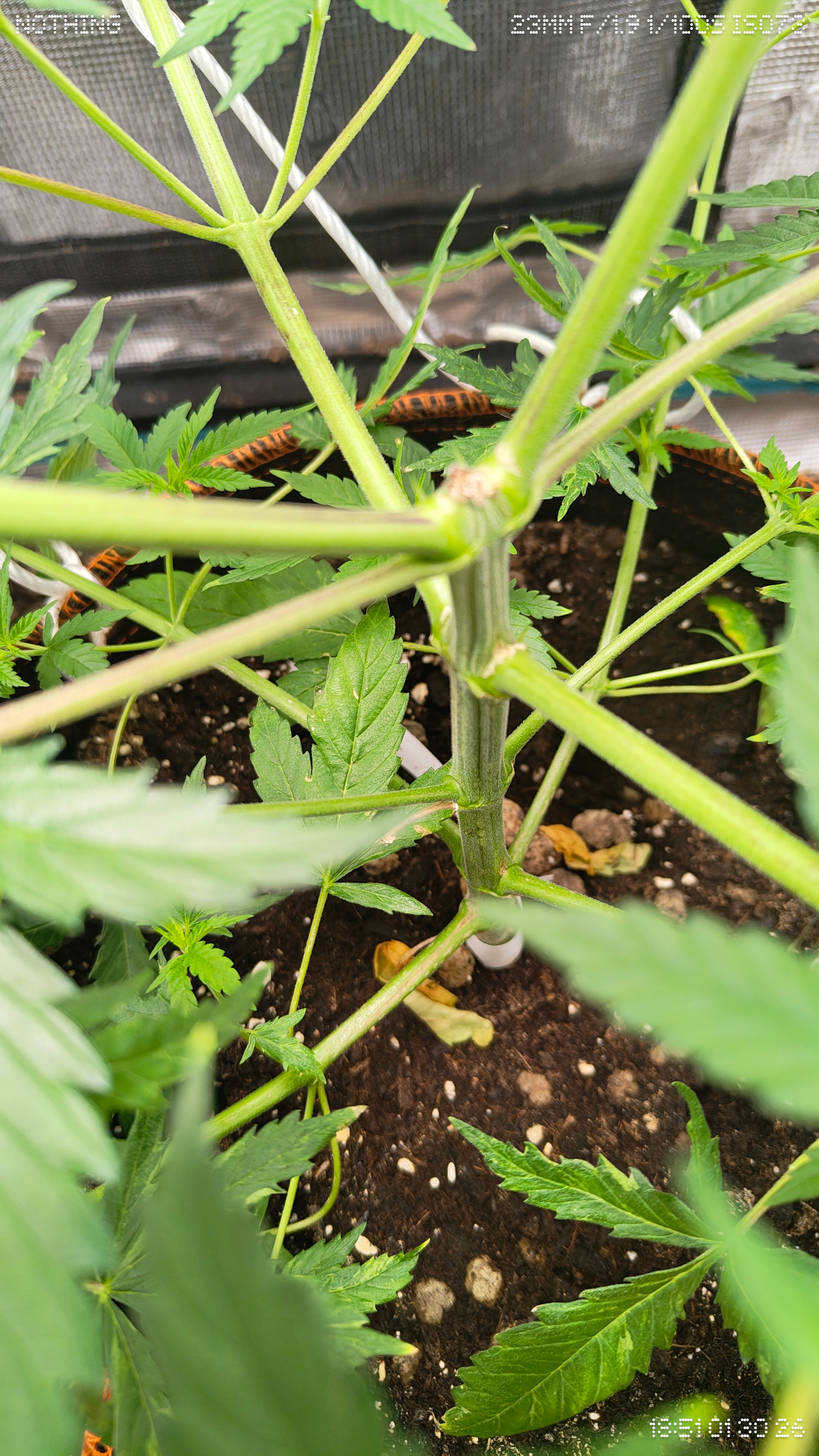 Wie dem auch sei. Ich musste feststellen dass 60cm einfach nicht reichen wenn man anständiges LST anwenden möchte. Deshalb habe ich die kleinen Äste unten gekappt damit die Pflanze sich nur noch auf die relevanten Äste konzentriert.
