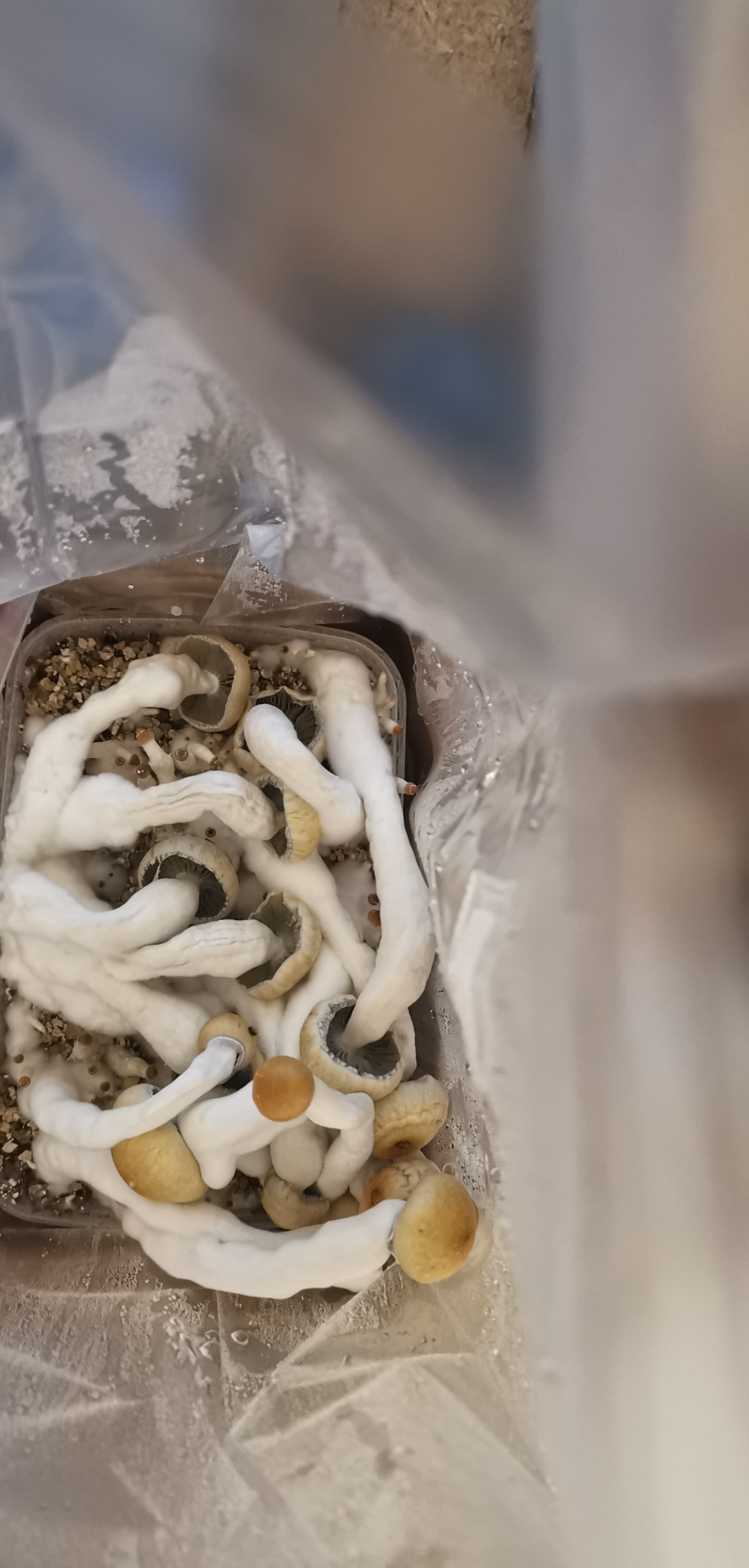 Ich würde sagen das die den Beutel berühren dürfen. Kritisch wird es bloss beim 2. und 3. Flush, wenn man die mini Pilze, die zwischen den großen wachsen, nicht gänzlich entfernt… Das kann denn schnell anfangen zu schimmeln.
