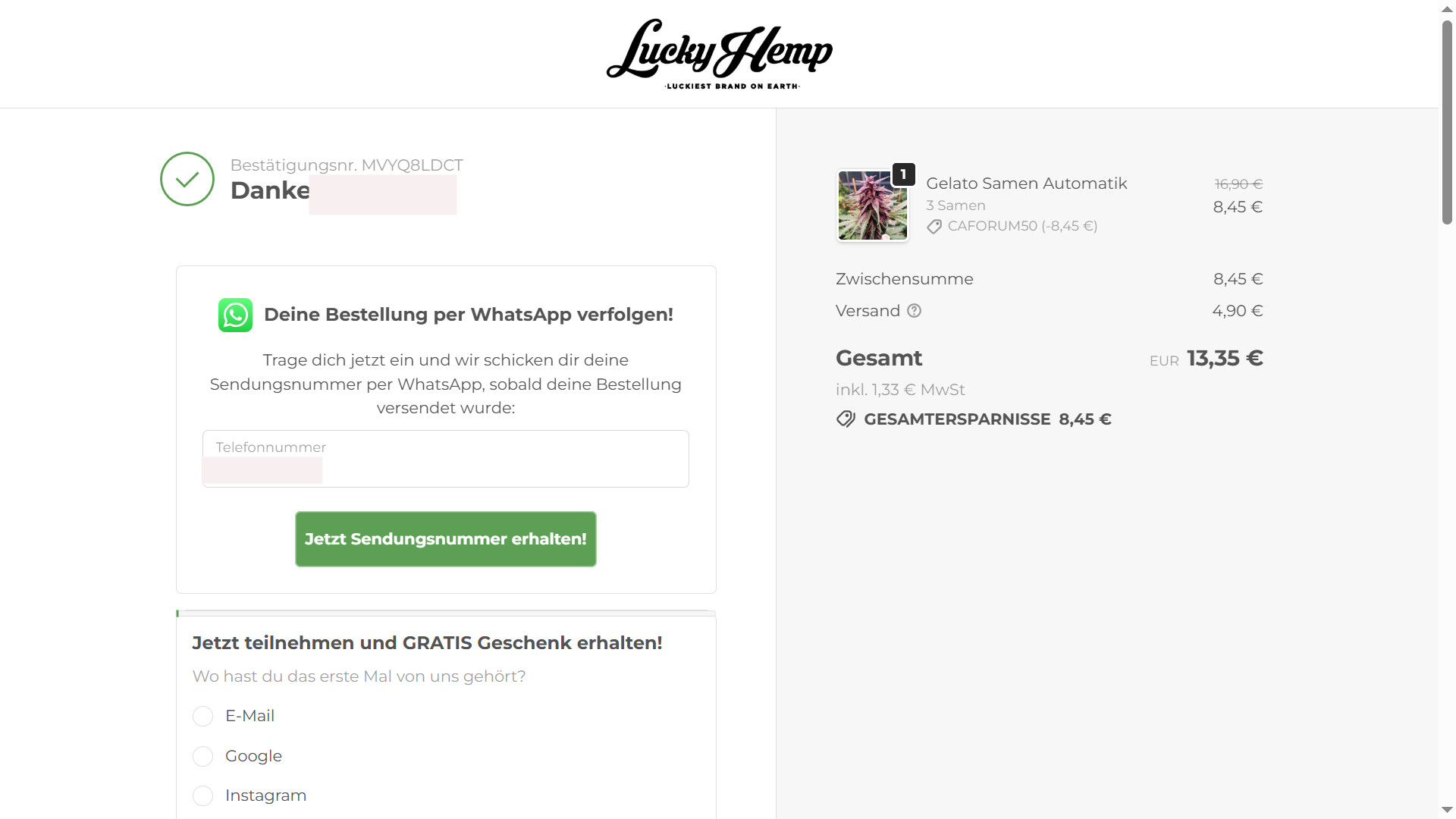 Jetzt zu Lucky Hemp gehen und dort den Gutschein einlösen!