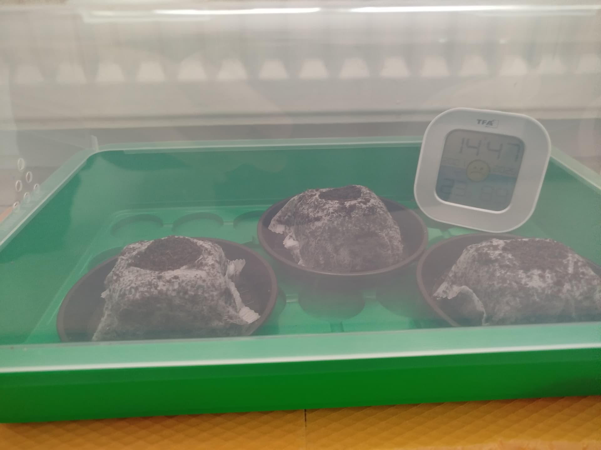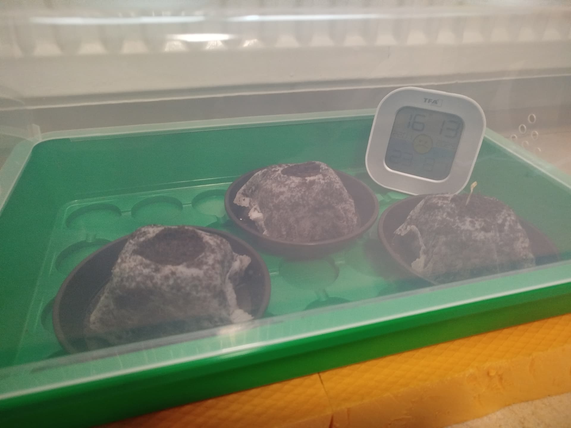Leider war von den anderen Samen immer noch nichts zu sehen, also Zahnstocher geholt und das Graben angefangen und siehe da bei beiden ein weißer Halm.