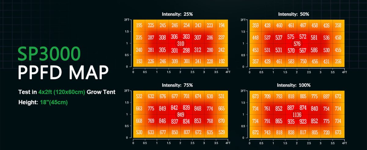 Meine Messwerte bzgl. PPFD habe ich mit Photone (ja, diese App) ohne Diffusor reingeholt und sie sind zu 90% deckungsgleich mit den Angaben des Herstellers.