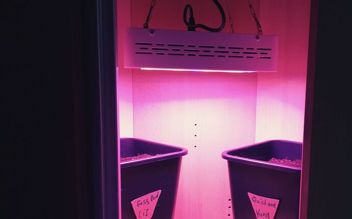 In 99 % alle Falle sollte man die Pflanzen in der Mini Growbox mit einer kleinen LED Lampe befeuern. Damit können die Pflanzen näher ran, sodass man möglichst viel Höhenwachstum bekommt.