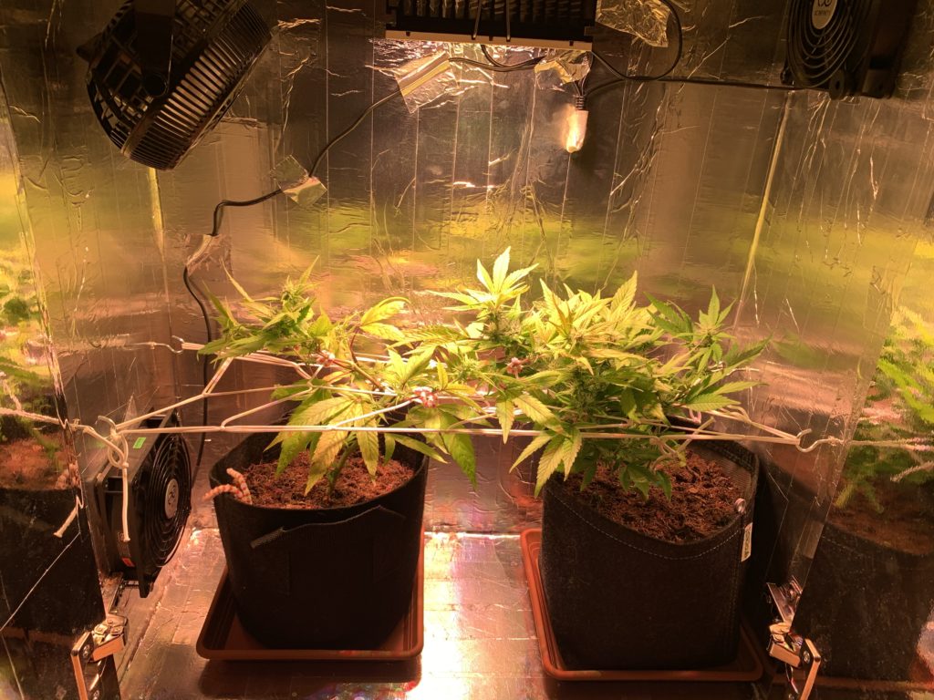 Als Anfänger sollte man auf einer Fläche von 30×30 mit nur einer Pflanze anfangen. Bei 40×40 cm sind auch schonmal zwei Pflanzen möglich. Würde man versuchen mehr Pflanzen reinzustellen, werden sie sich anfangen gegenseitig das Licht wegzunehmen. Da man in der Höhe stark eingeschränkt ist, wird man als Erstgrower schon genug zu tun haben die Lady klein und kompakt zu halten. Da sollte man es nicht noch komplizierter machen.