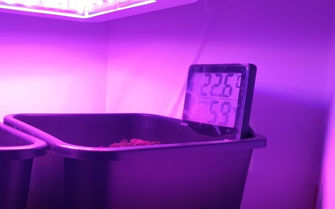 Man muss auf den Temperaturabfall in der Dunkelphase achten. Sobald die Lampe ausgeschaltet ist, gibt sie keine Wärme mehr ab und die Luft in der Growbox kühlt ab. Da kühlere Luft weniger Wasser speichern kann, kann die Luftfeuchtigkeit zu stark zu steigen. Deshalb sollte das Thermo-Hygrometer Min/Max Werte anzeigen können. So kann man die Schwankungen der Temperatur und Luftfeuchtigkeit im Blick behalten.