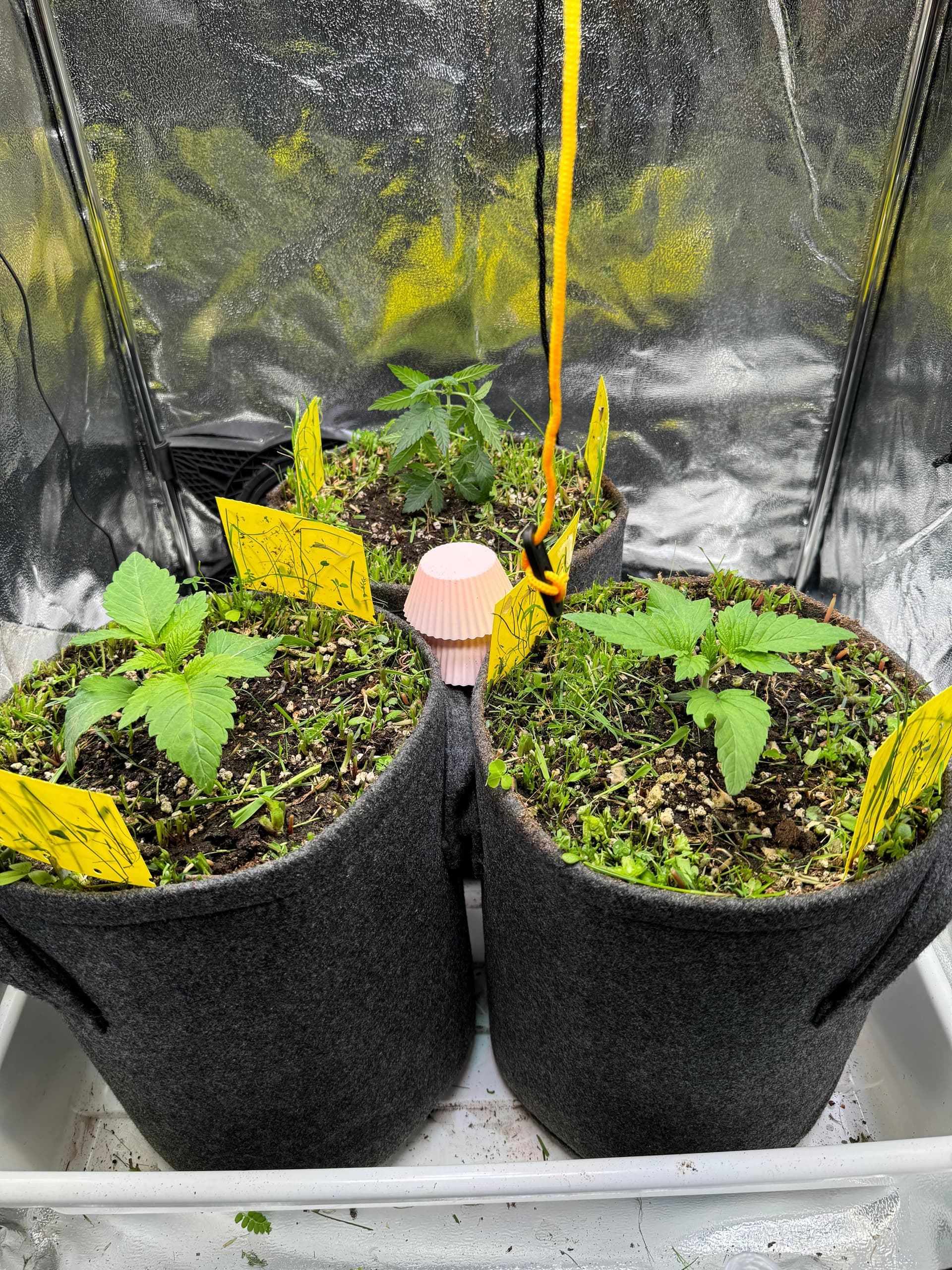 2 von 4 wollten einfach nicht keimen. Nach 10 Tagen neue angesetzt. Dementsprechend ist der grösenunterschied. Das versuche ich gerade mit leichtem Lst zu begradigen.
