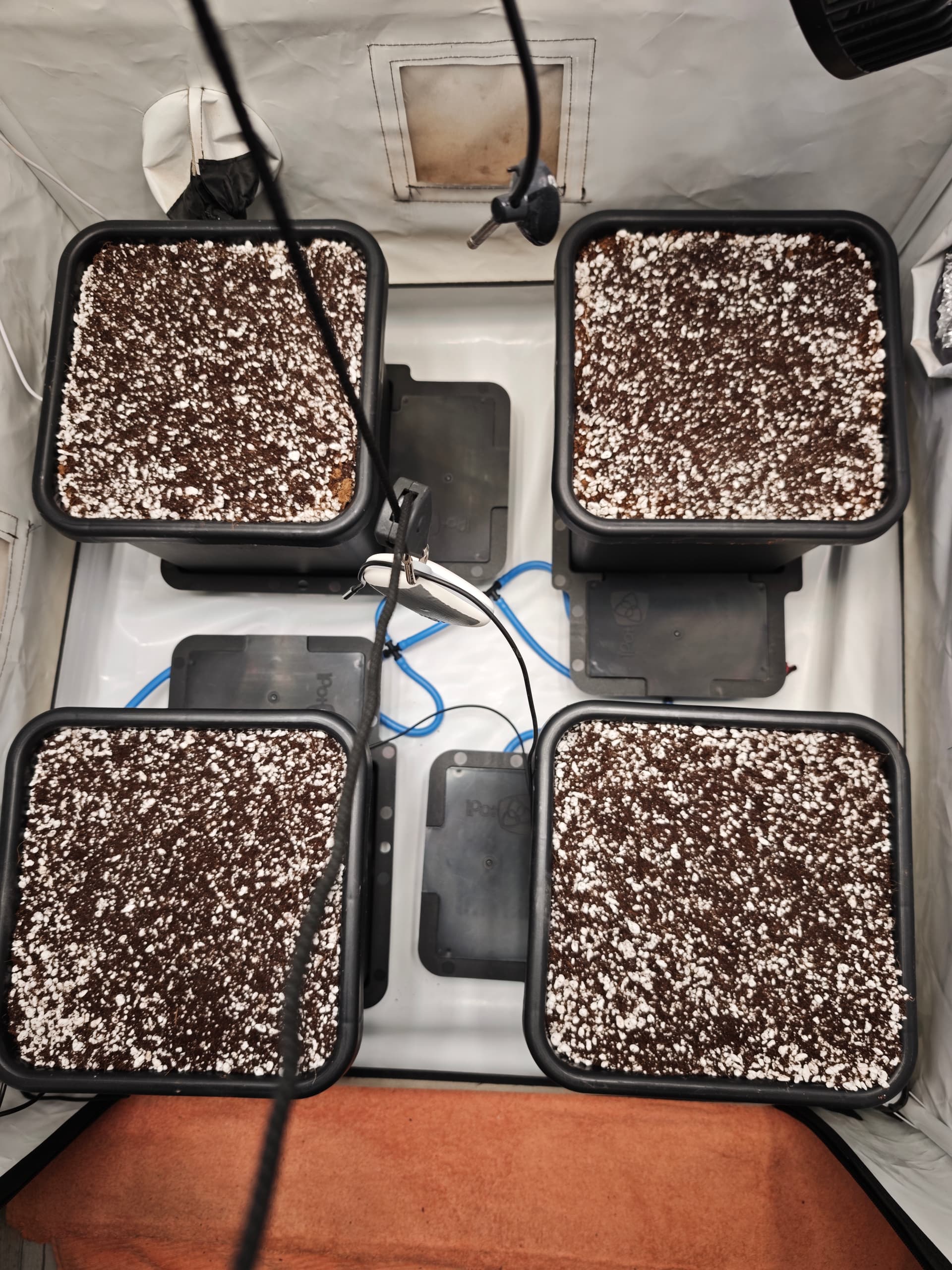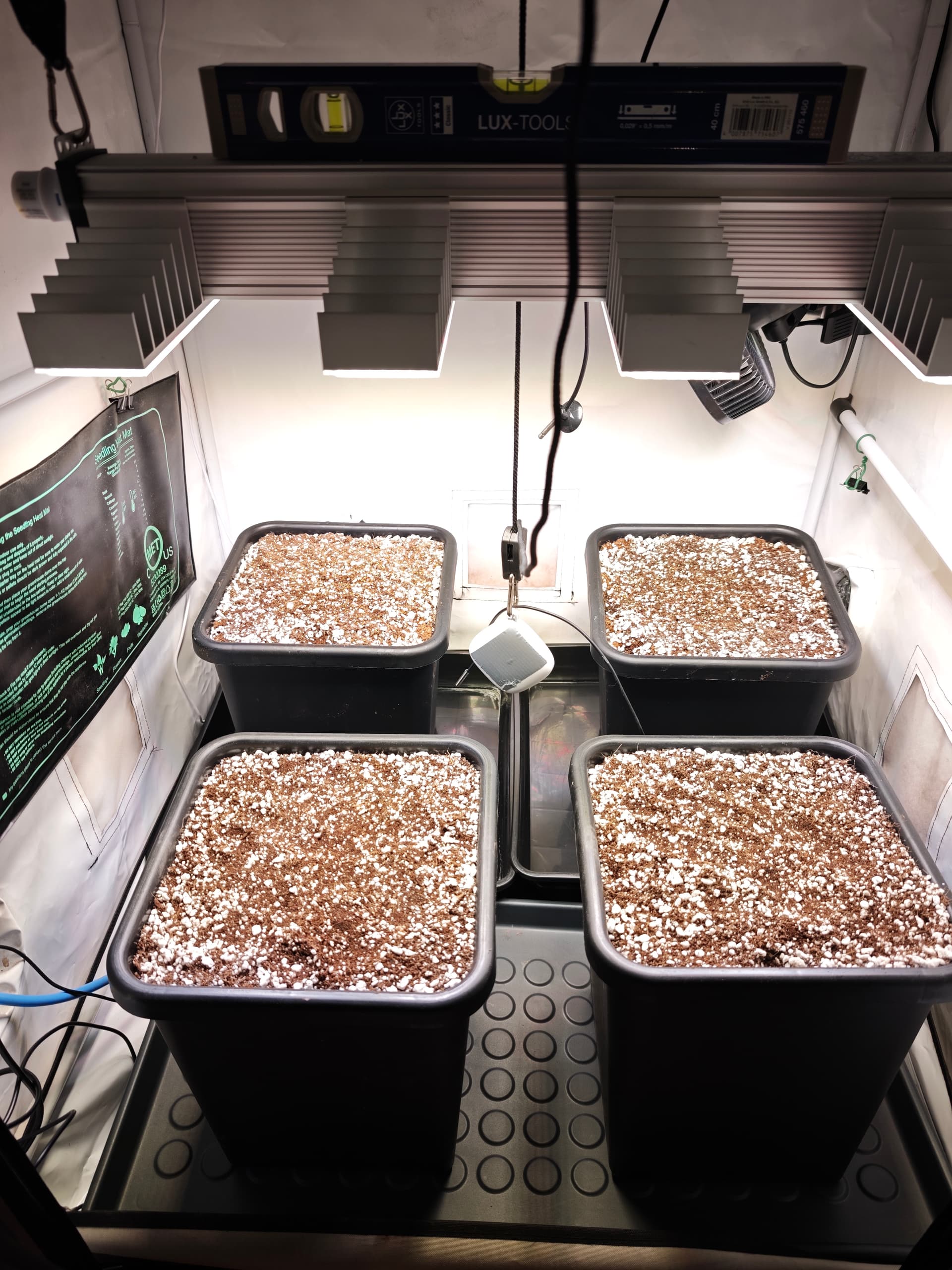 . Habe Sie in die vorbereiteten Töpfe gepflanzt,und noch abgedeckt. Im Zelt herrschen 25-26 Grad alles gut feucht morgen wird mal geluschert