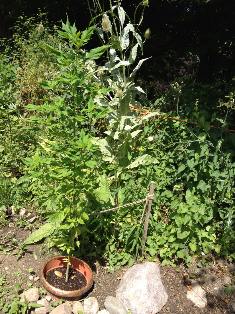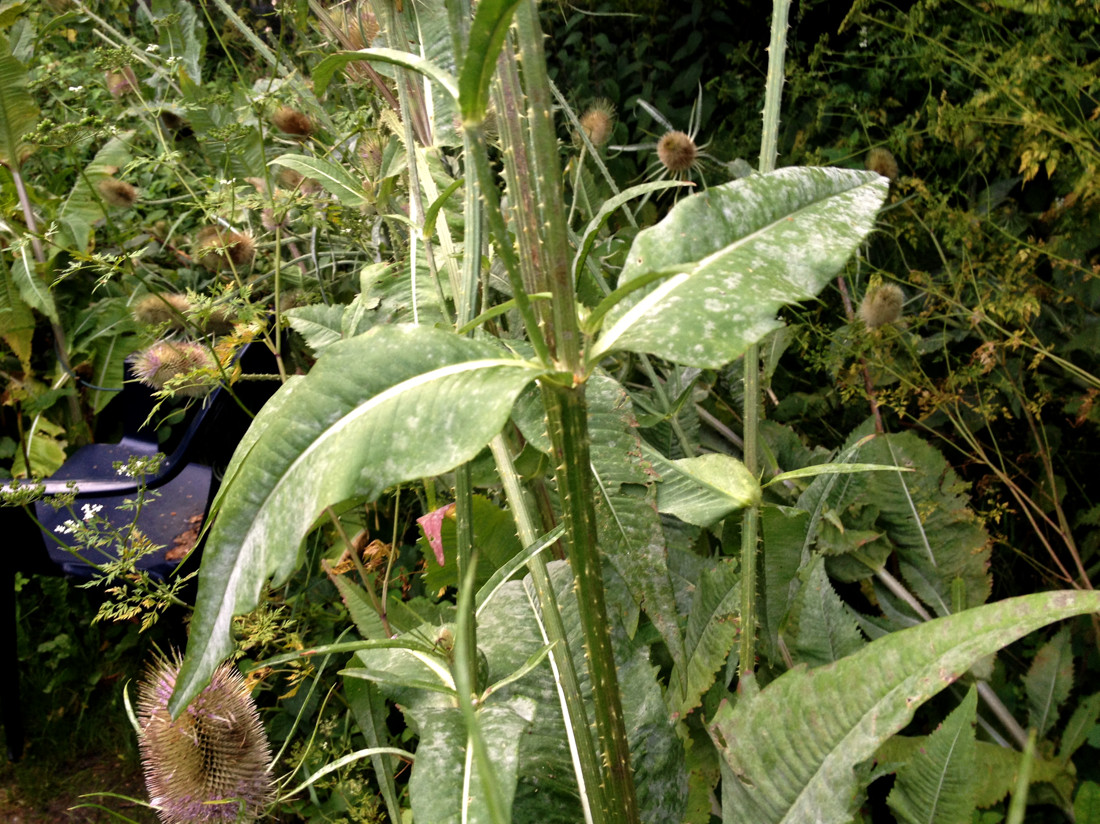 Auf den großen Karden habe ich Mehltau-Befall entdeckt. Also musste ich sie leider kappen . Zum Glück sind sie schon weitestgehend ausgeblüht, und haben Hummeln und Wildbienen mit allem versorgt, was sie hatten.