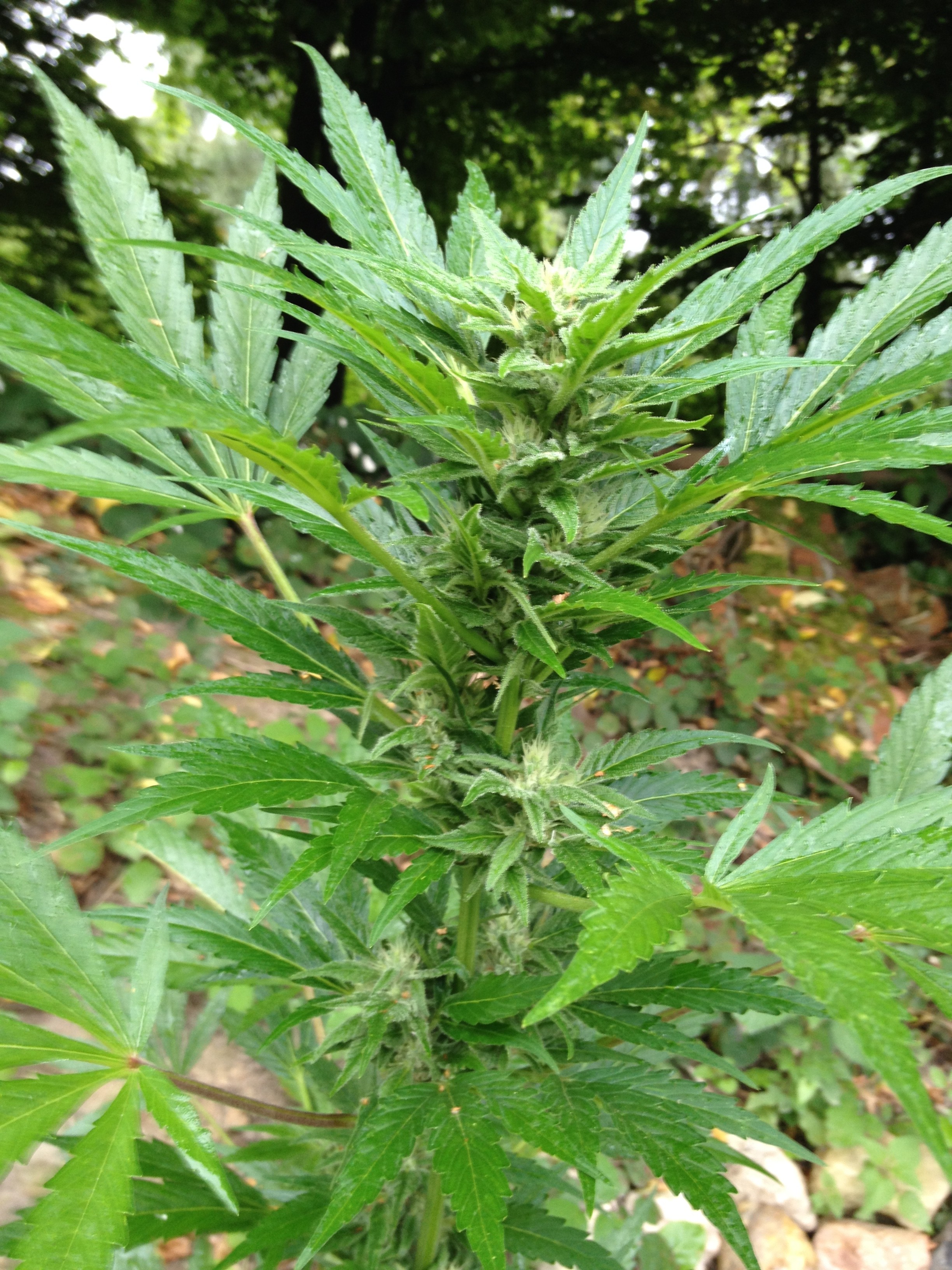 Die anderen zwei sehen gut aus, aber sie leiden natürlich am Wetter. Bald sind die Buds dicht genug, dass wieder Schimmelgefahr besteht. Aber mit Tag 58 sind sie eigentlich schon innerhalb der Breeder-Zeitangabe, sehe ich gerade. Also vielleicht demnächst schonmal Trichome checken … trockenes Wetter ist bis auf weiteres nicht zu erwarten.