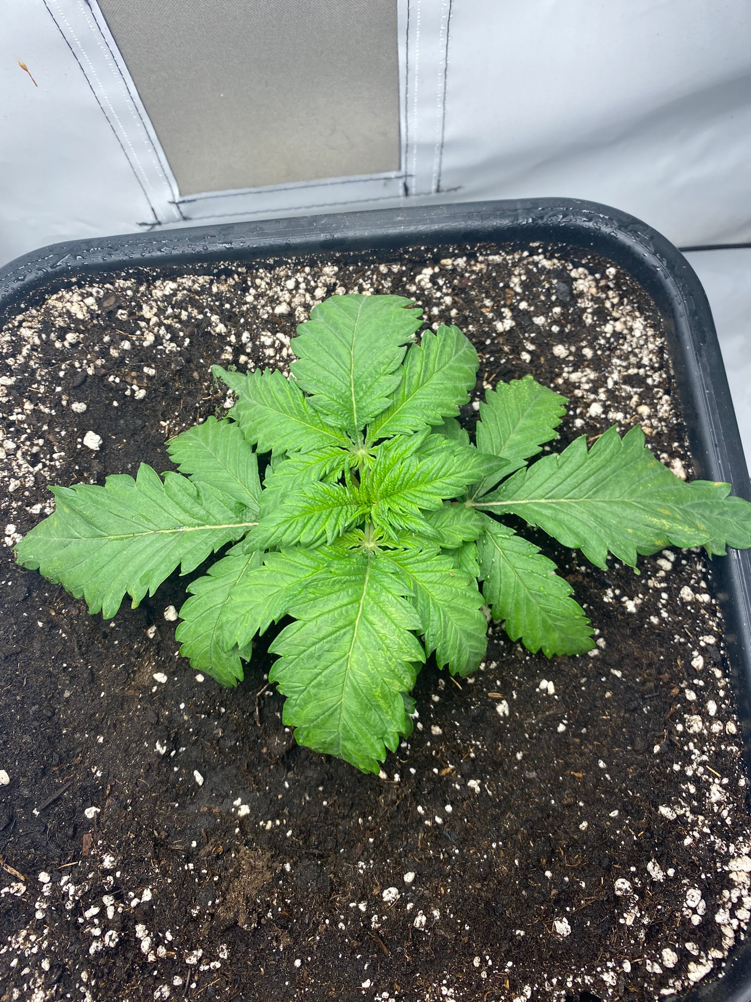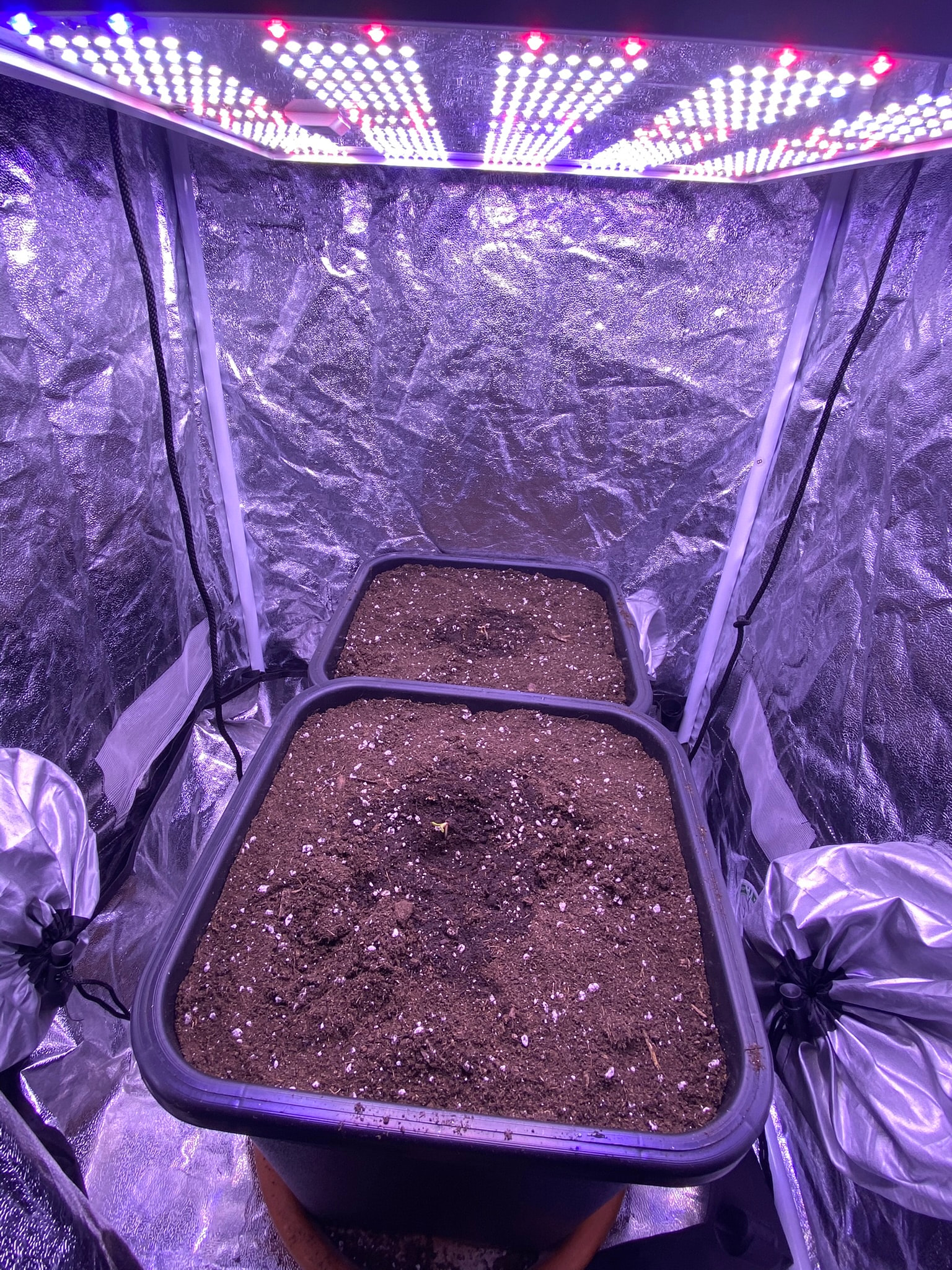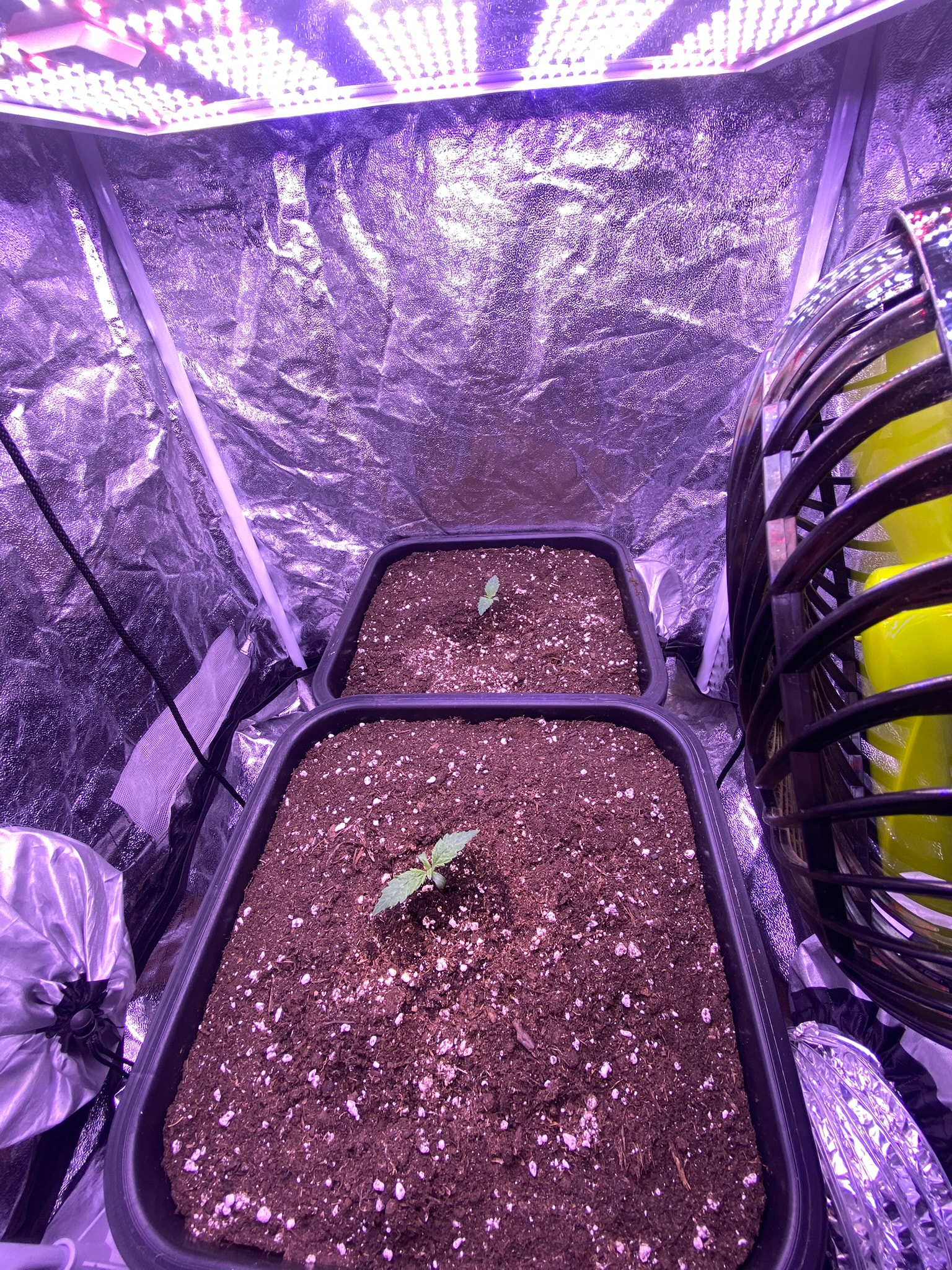 Außerdem Umzug ins 80x80 Tent, die Lampe Mars Hydro (150 Watt) läuft seit 5 Tagen auf 50%. Die Caluma Force 150 Watt würde ich dann zur Blüte mit einschalten.