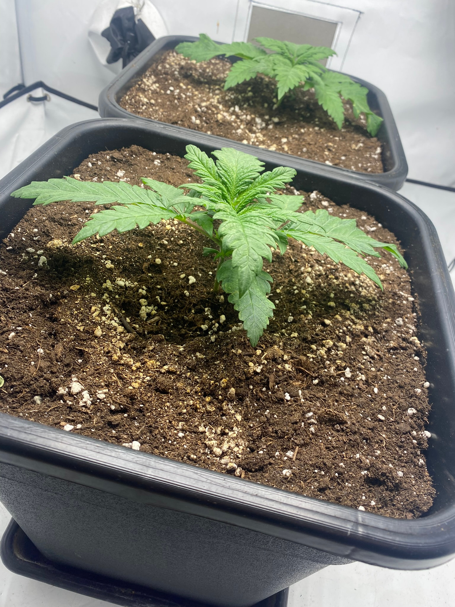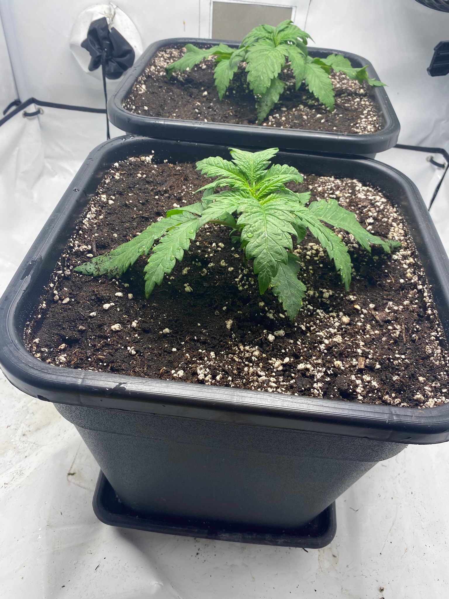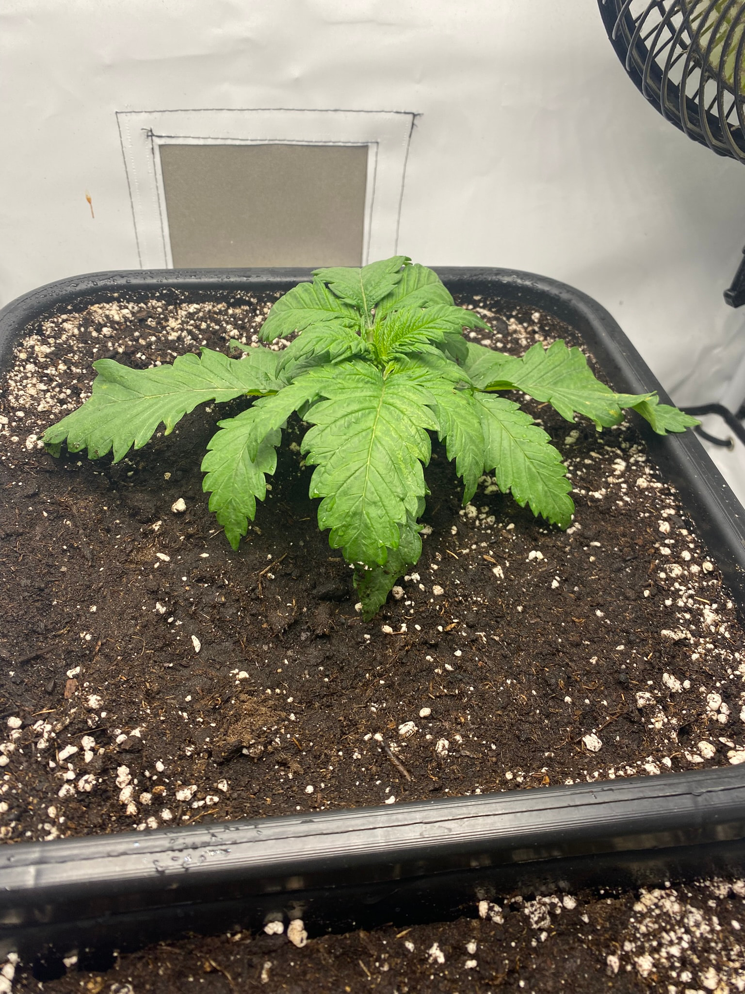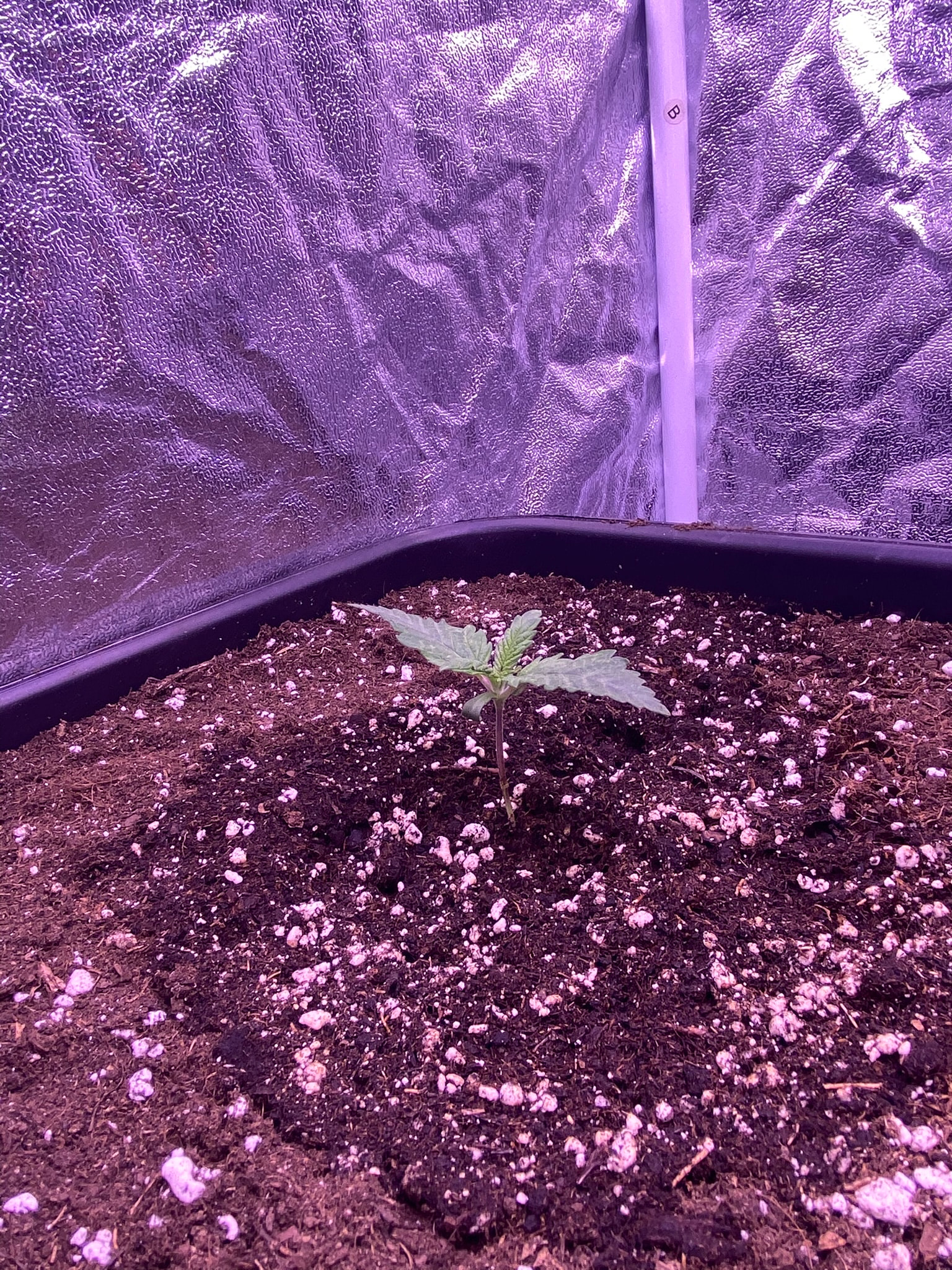 Außerdem Umzug ins 80x80 Tent, die Lampe Mars Hydro (150 Watt) läuft seit 5 Tagen auf 50%. Die Caluma Force 150 Watt würde ich dann zur Blüte mit einschalten.