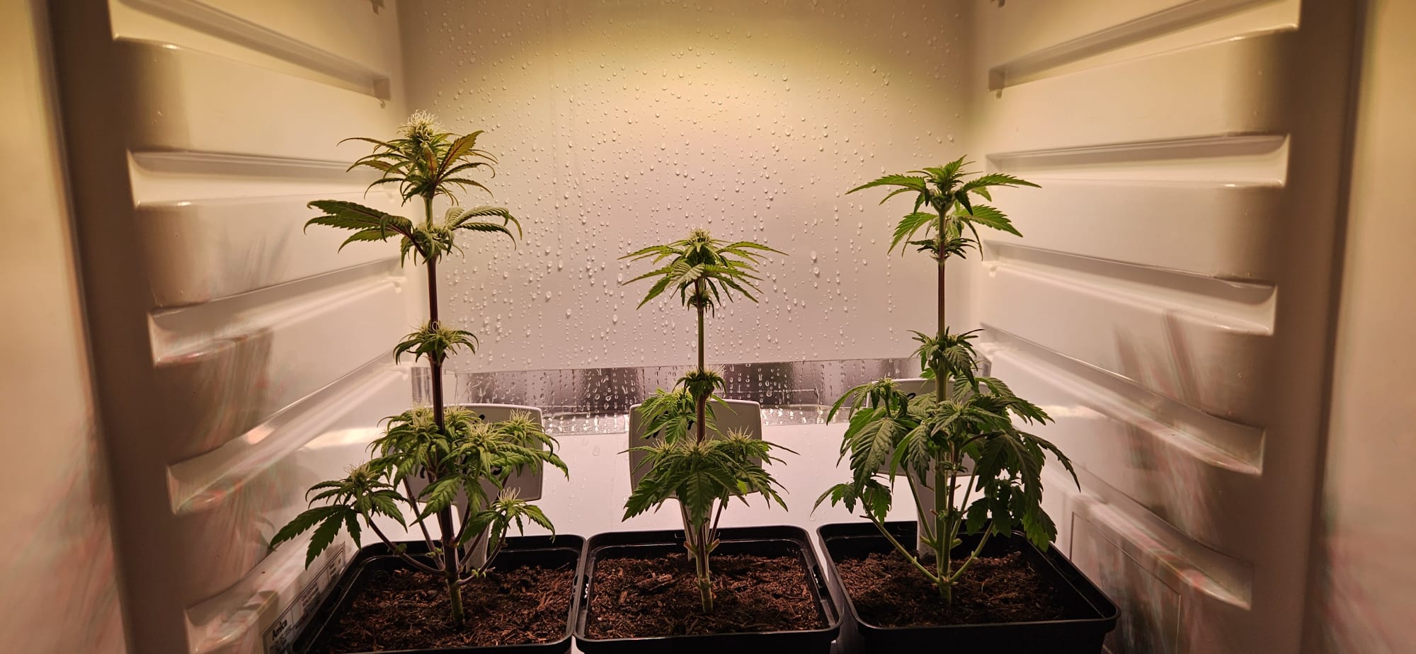 Das mit dem Kühlschrank ist ein nettes Experiment, ich würde dir beim nächsten Durchgang jedoch den Umzug in ein 40er Zelt empfehlen, Kauf einer günstigen Abluftanlage , sowie 1 Pflanze in einem größeren Topf.