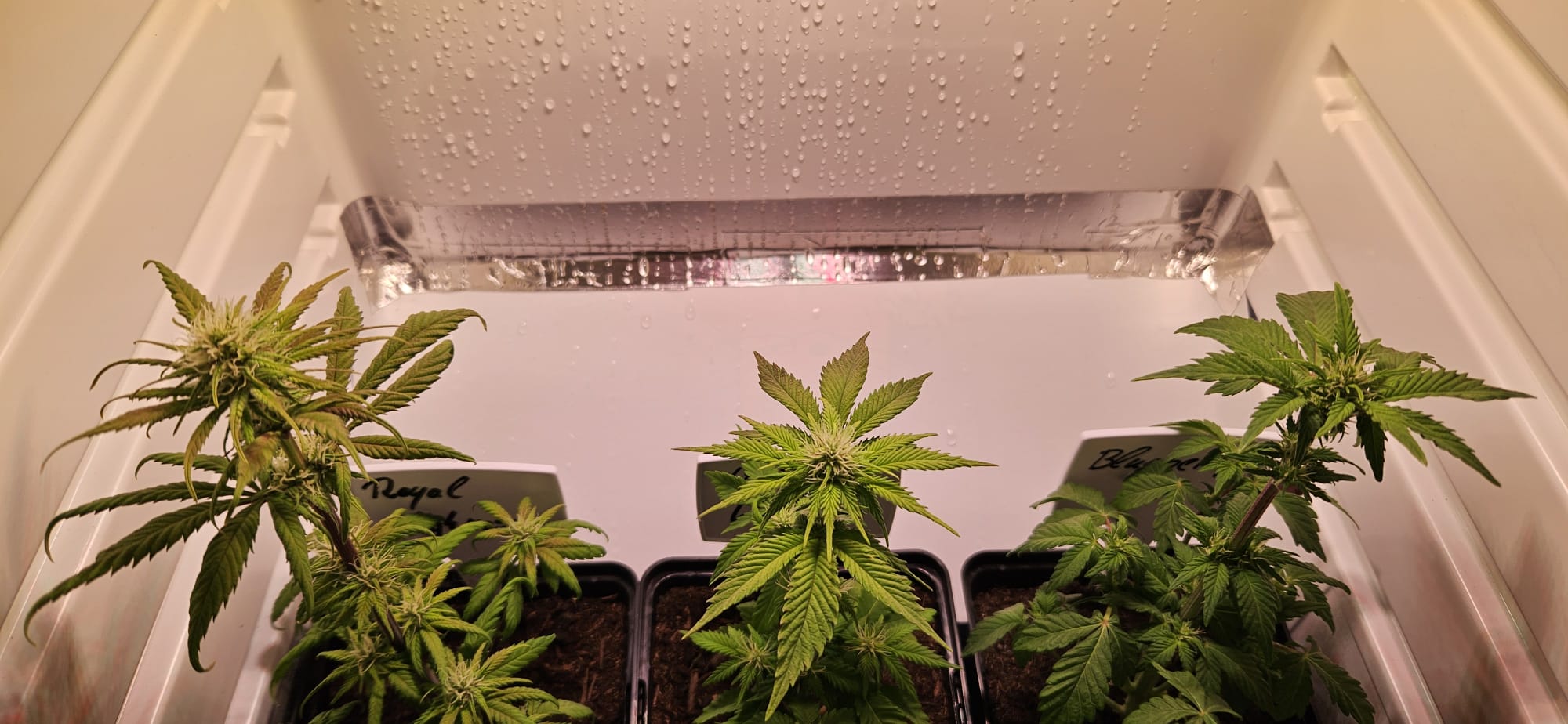 Beim nächsten Grow werde ich es mit einer oder zwei Pflanzen probieren, später in die Blüte schalten und vorher auch hart trainieren. Mit den 1,5l Töpfen und den kleinen Pflänzchen besteht scheinbar ein Ungleichgewicht was Probleme beim Wässern macht. Da ich die Töpfe nicht reduzieren möchte, muss beim nächsten Durchgang mehr Grünzeug her.