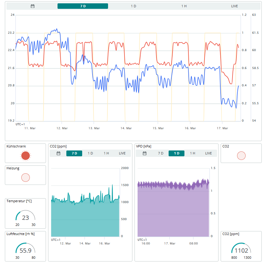Wo hast du denn die Sensoren für die ganzen Umgebungswerte untergebracht? Kühlschränke sind ja schon im normalen Betrieb notorisch für ihre unterschiedlichen Klimazonen und ich sehe auf den Bildern keine Elektronik in der Nähe der Pflanzen.