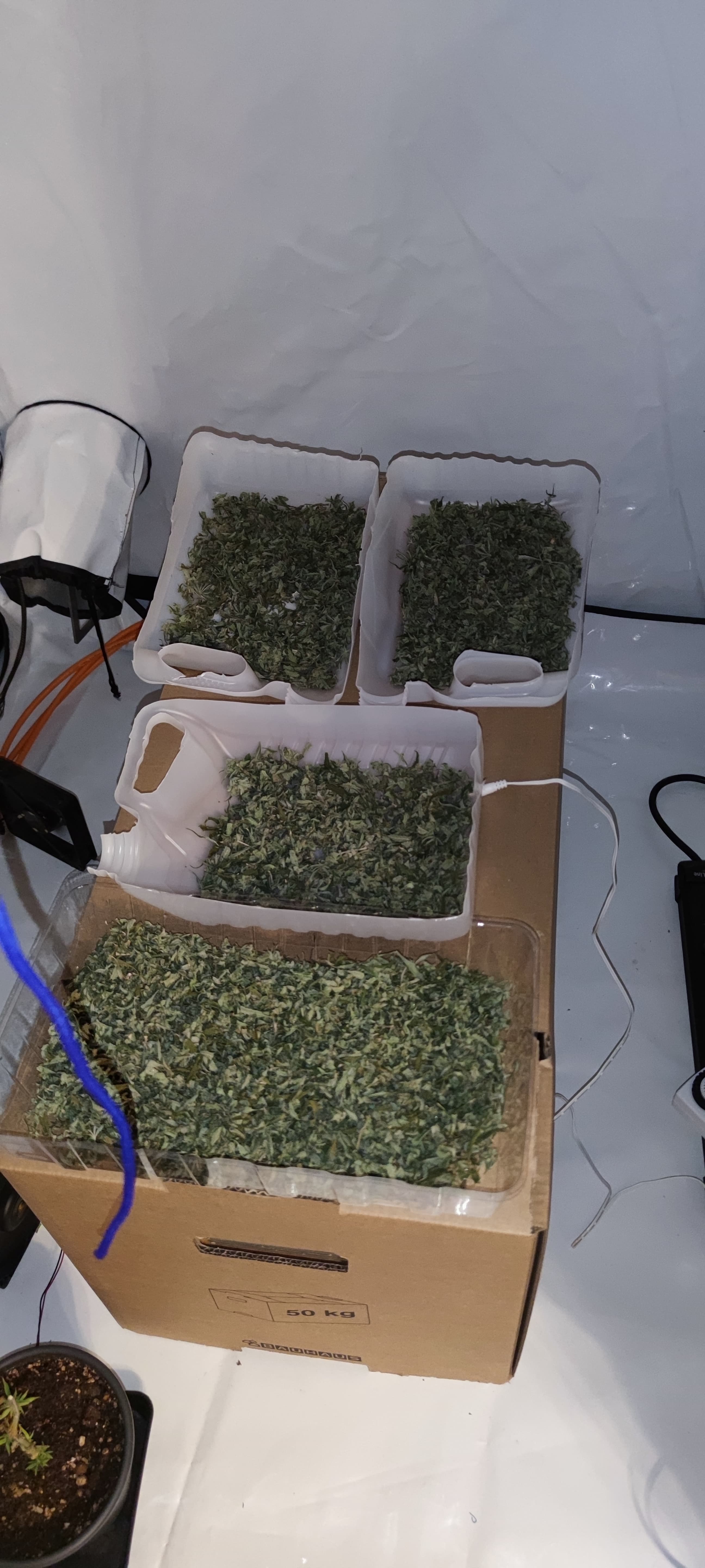 Ende vom Lied sind dann doch 2.2kg feucht die seit einer Woche bei 16°C und 50-55%Rlf im Zelt hängen