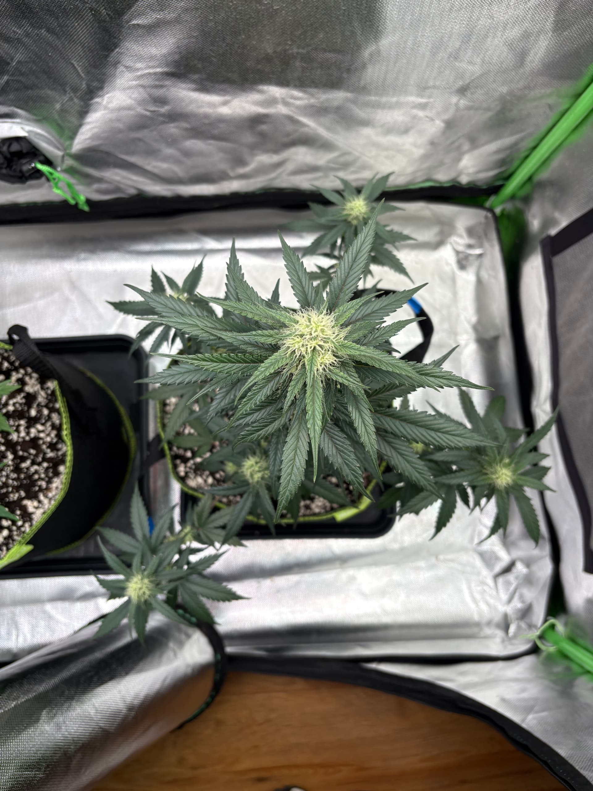 Deswegen hab ich die Pineapple entlaubt… endlich bekommen auch die Triebe Licht ab!!! Habs nie so früh gemacht!(sonst immer nach dem Stretch) und bei der Tangie 2 Fächerblätter die mich seit langem genervt haben jetzt müsste an alle Blüten licht ankommen!