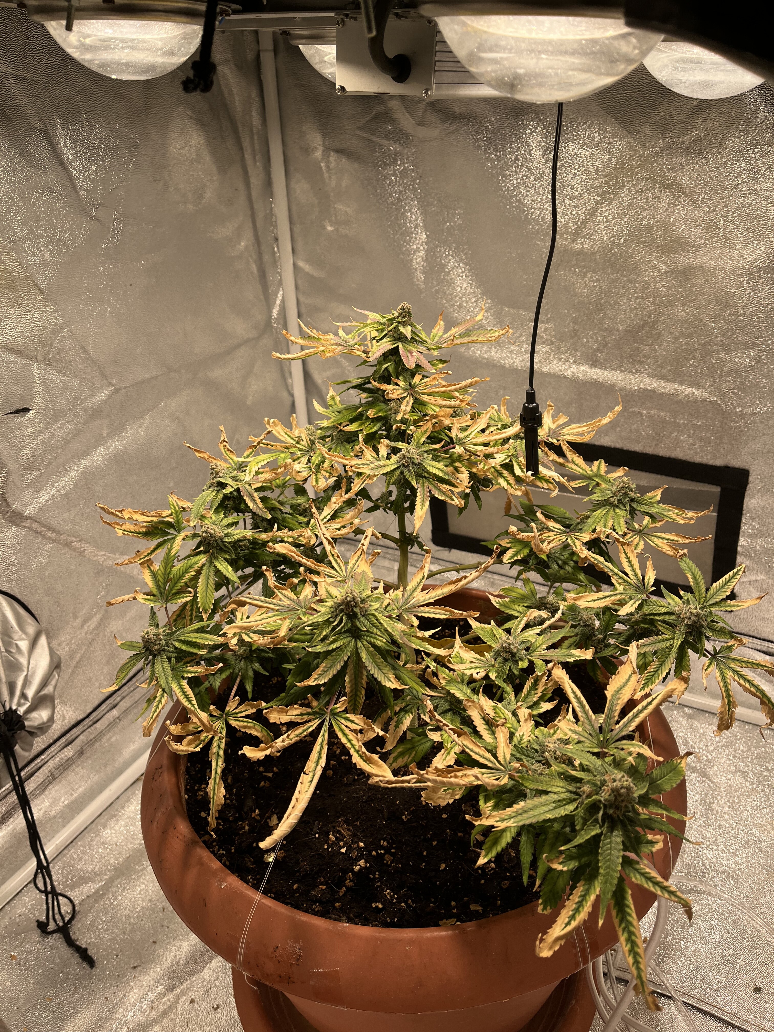 sind jetzt bei 120cm & mit topf bei 140cm, Ja stofftöpfe war mir wichtig weil ich die von unten gieße und das Wasser vom Stoff aufgesogen werden durch den kapillar Effekt und unten wurde mit 2-3cm Blähton gefüllt damit das überschüssige Wasser nicht immer kontakt mit der erde oder den wurzeln hat. Ich bin auch gespannt bin aber ehrlich nicht wirklich überzeugt von der genetik dieser Biscotti die Wedding Gelato platzen aus allen nähten (kann ich dir empfehlen) wobei die Biscotti eher sich zurück hält, was nicht ist kann ja noch werden. ![]()