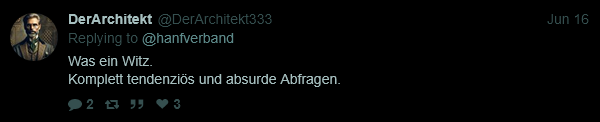 Nachtrag: Es geht ja letztlich bei der Evaluierung darum, ob die für das Ganze im Vorfeld formulierten Ziele (besserer Gesundheitsschutz (nicht höheres Wohlgefühl), Zurückdrängen des Schwarzmarkts, Adressierung der durch den bislang illegalen Konsum entstandenen Probleme, etc.) erreicht werden können, wenn man den Weg so weitergeht bzw. eine weitergehende Freigabe anstreben würde. Außerdem muss eben geschaut werden, ob die Freigabe bislang zu den von den Gegnern angeführten befürchteten Problemen geführt hat, worauf ein großer Teil der Fragen offensichtlich abzielt. Dort glaubhaft darzulegen, dass das nicht der Fall ist, bringt vermutlich deutlich mehr, als Leute, die anhaken, wie toll sie Gras finden. Es war auch ausdrücklich kein (offizielles) Ziel, dass der Einzelne sich dann besser fühlen solle, weil er offen kiffen und anbauen könne, und entsprechend wär’s nicht einmal zielführend, dahingehende Fragen in die Umfrage zu packen.