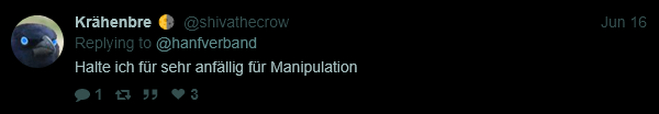 Das war Teil meiner Antwort auf diese Unterstellung von dir, dass ich Cannabis aus der Apotheke beziehe etc.