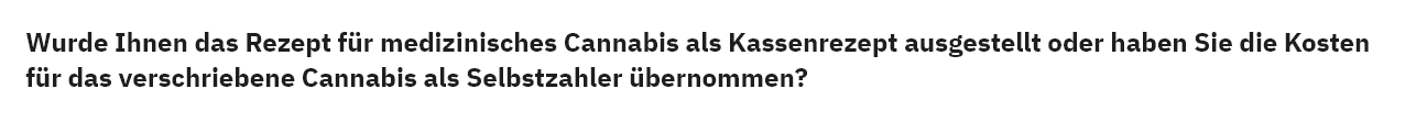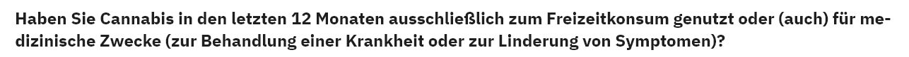 Wenn du schreibst, dass deine positiven Effekte tatsächlich durch die Verwendung von Cannabis als Medikament aus der Apotheke resultieren, dann ist das sehr schön für dich – aber für die Umfrage nicht von Interesse – dort geht’s um den Freizeitkonsum.