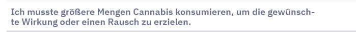 Das ist ’ne Standardfrage nach Toleranzaufbau, und nach ICD-11 ein Hinweis auf (kein einzelnstehendes Kriterium für) Abhängigkeit. Wenn man mehr konsumieren muss (das Wort ist wichtig), um eine gewünschte Wirkung oder überhaupt einen Rausch zu erzielen, also ein Zwang dahintersteht, dann ist das nunmal problematisch. Steht jedem frei, dort mit „nein“ zu antworten, wenn er mehr konsumieren will, um zu schauen, wie es dann wirkt (was im Übrigen nicht mal unter „gewünschte Wirkung“ fallen könnte).