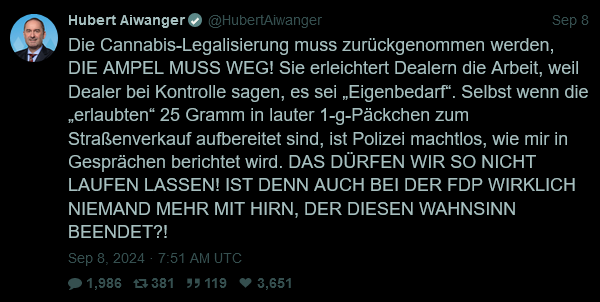 Hieß es aus deren Reihen nicht immer „Haben wir denn keine anderen Probleme?“ als es um das Cannabis Gesetz ging?
