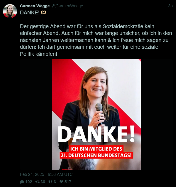 Jetzt werden einige von euch gleich rufen wollen „Aber Frau Wegge ist doch jetzt eh raus aus dem Bundestag…“.