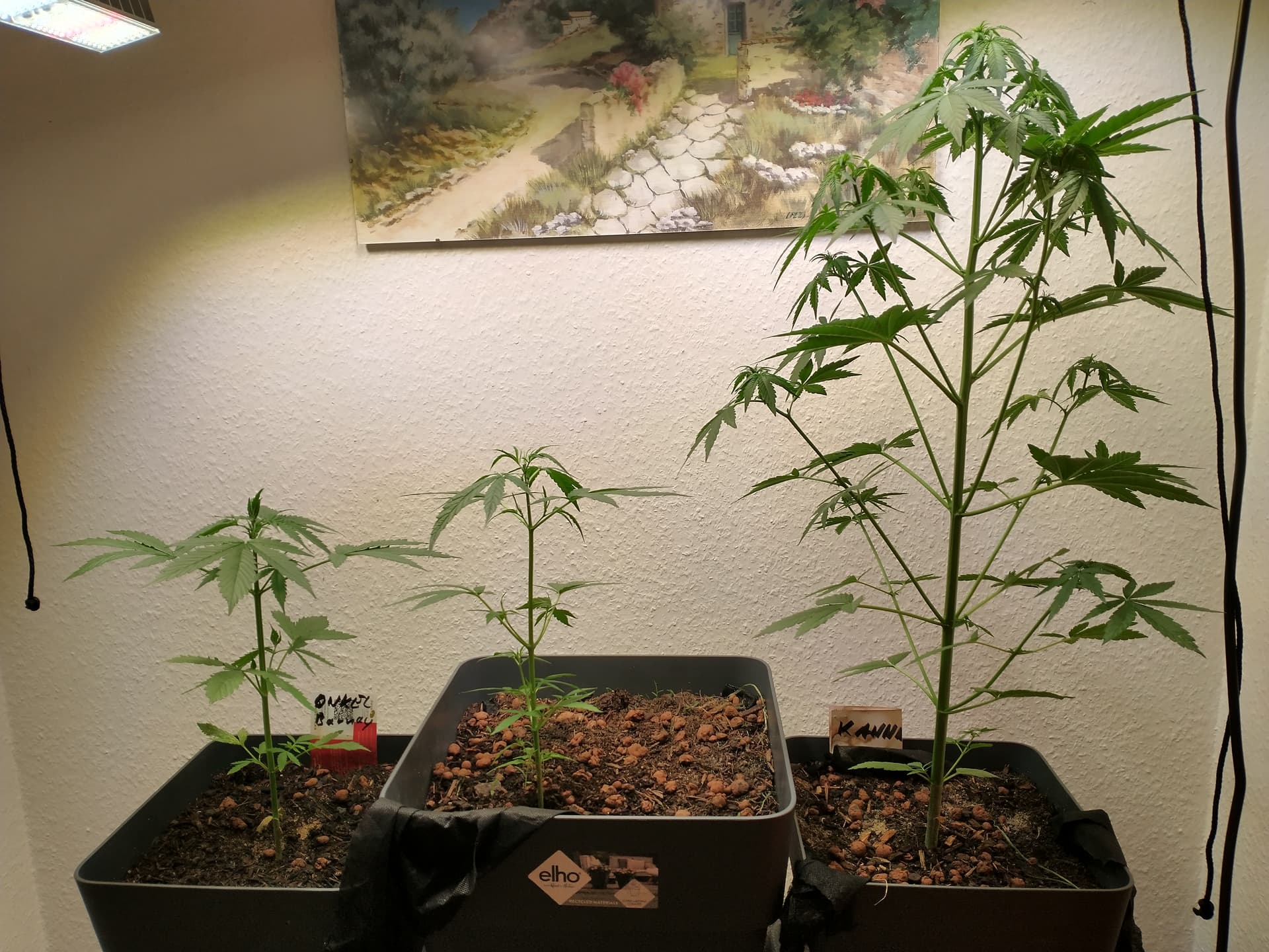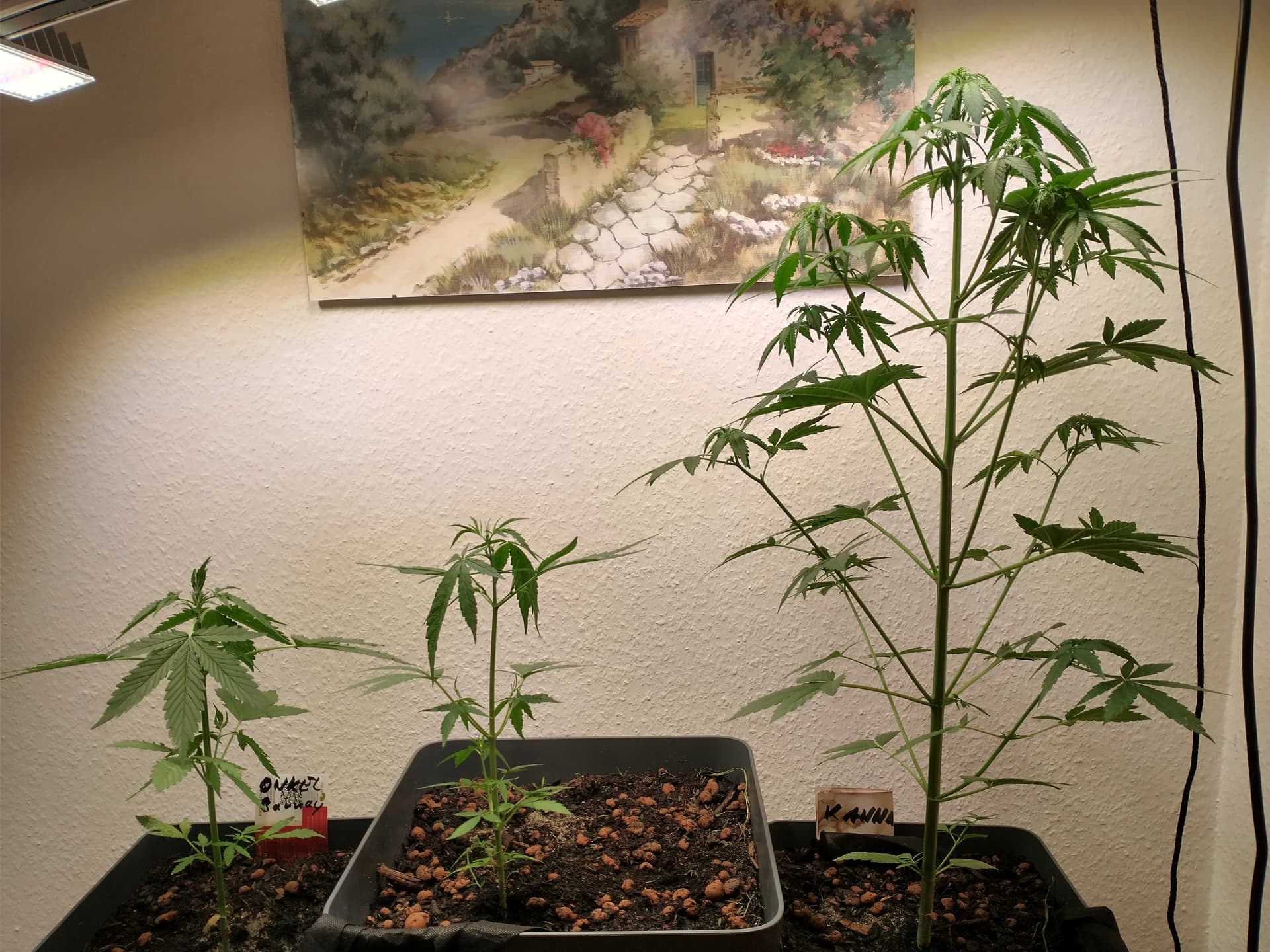 OK, aber wie gesagt, eine Kannabia ist schon fertig- aber da gibt’s zwei Kandidaten von anderen breedern die gleichzeitig gekeimt sind und locker zwei Wochen länger brauchen. Also die Wild Thailand Ryder, im unteren Bereich, wahrscheinlich eher drei.