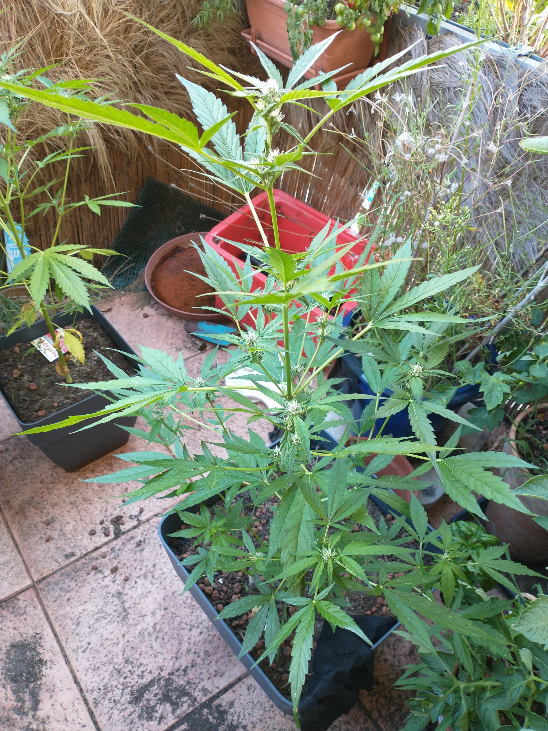 Auf jeden Fall ist die Blüte in vollem Gange. Ich vermute aber, dass sie noch mindestens bis Ende August brauchen. Die andere Kannabia wuchs von Mitte April bis Anfang Juli, also inklusive trocknen bis Samstag musste man 120 Tage ab der Keimung rechnen! Angeblich brauchen die Frühlings- Autos ja länger als die zweite Generation im Sommer, wir werden es sehen.