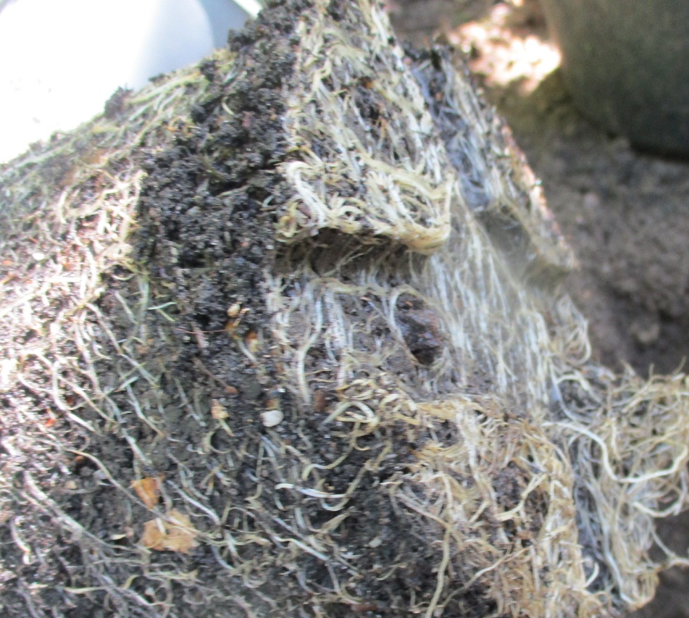 Die Barney’s hatte wohl langsam genug vom Leben im drei (?) Liter- Topf. Ich habe die Wurzeln unten vorsichtig ein bisschen gelockert.