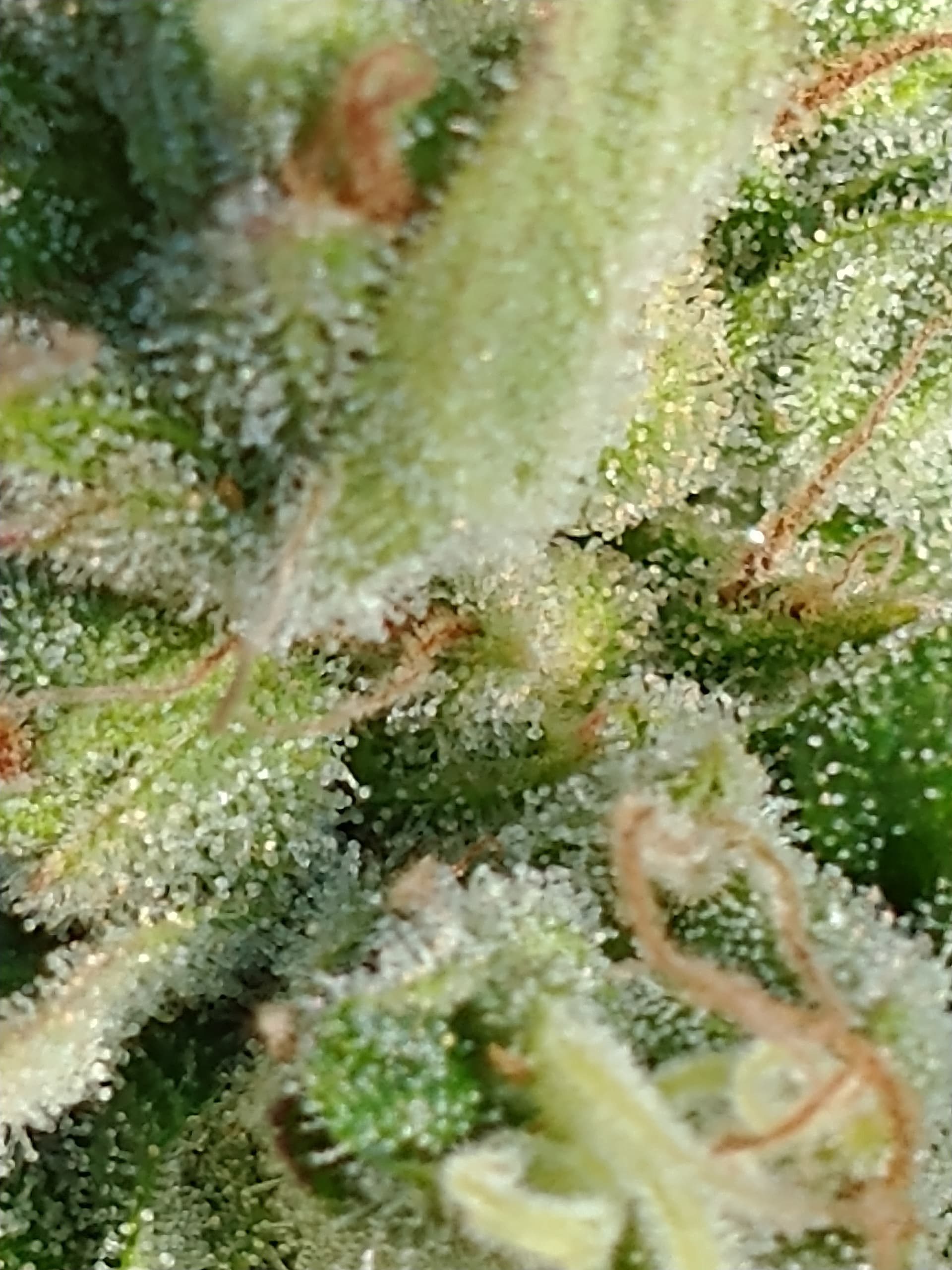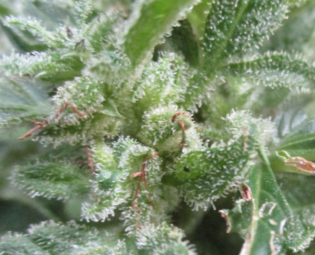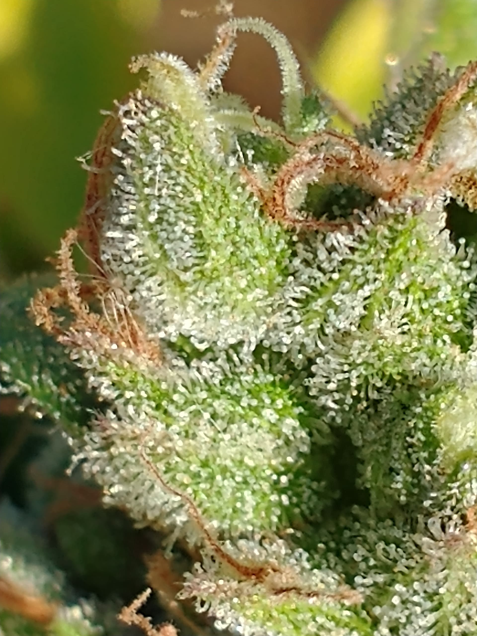 Man sagt ja, mit mehr Bernstein wird die Wirkung entspannender. Aber wenn die Trichomenköpfe ausgebildet sind, viele Teile sich dabei auch krümmen, und schon etwas Bernstein auftaucht, sind wir wohl in der reifen Phase. Also wirklich zu früh ist was anderes; aber Geschmackssache, wann man nun die Schere ansetzt.