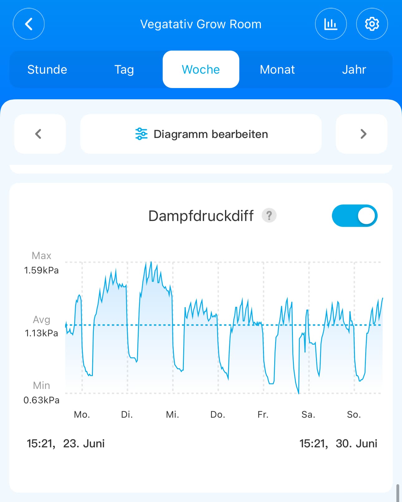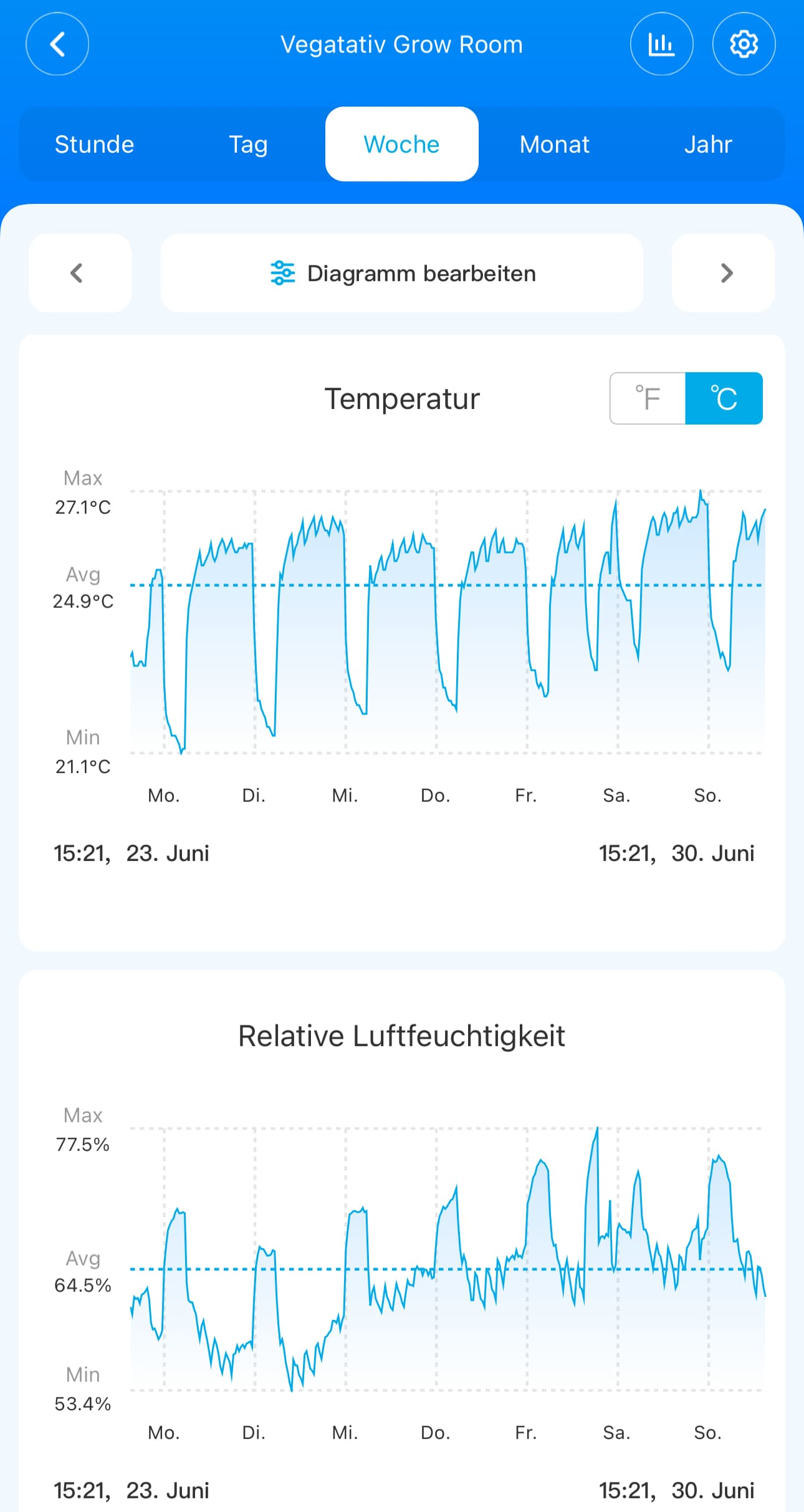 Die Klimaparameter sind im idealen Bereich. Die letzen zwei Tage etwas grenzwertig, da wir gestern bis zu 35°C hier im Süden hatten.
