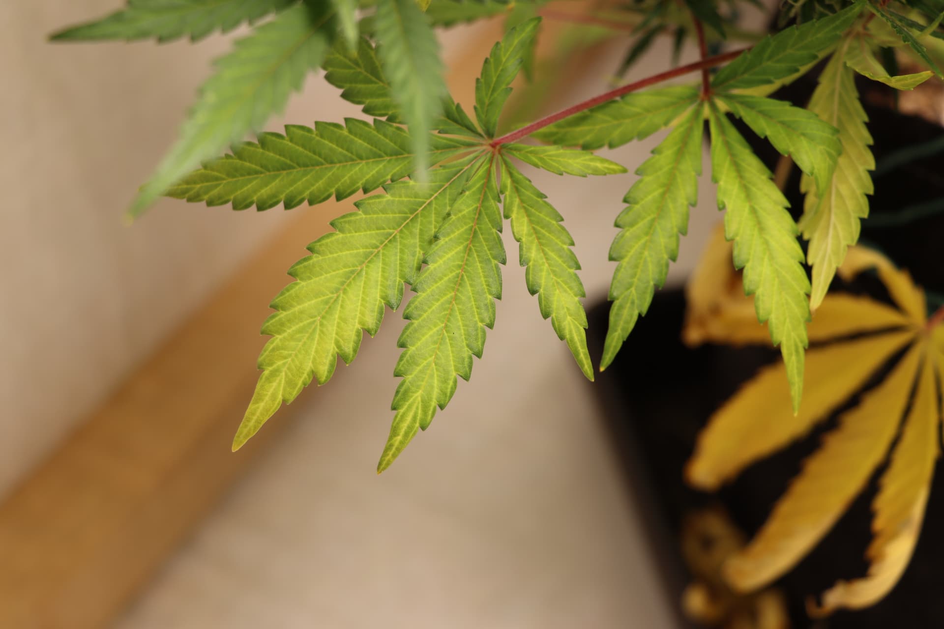 Stickstoffmangel, zunehmende Entfärbung der Blätter