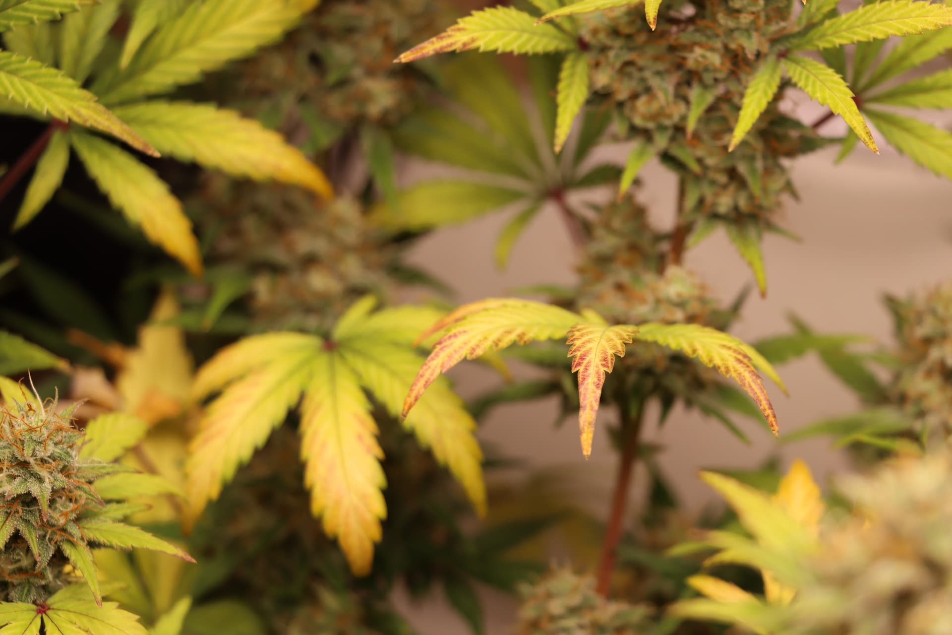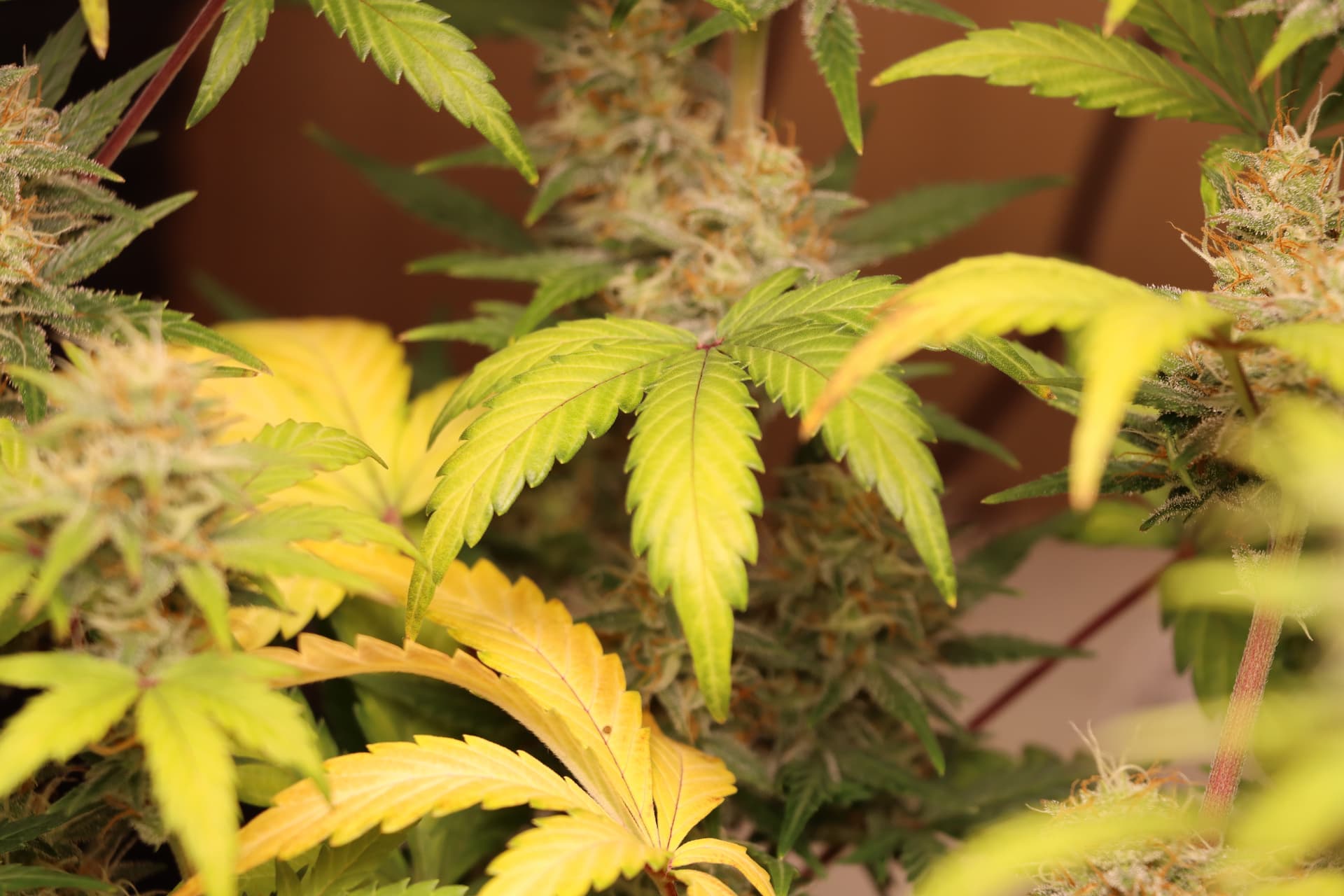 Stickstoff-Überdüngung, verbrannte Blattsptizen, krallen, lilafärbung der Stengel