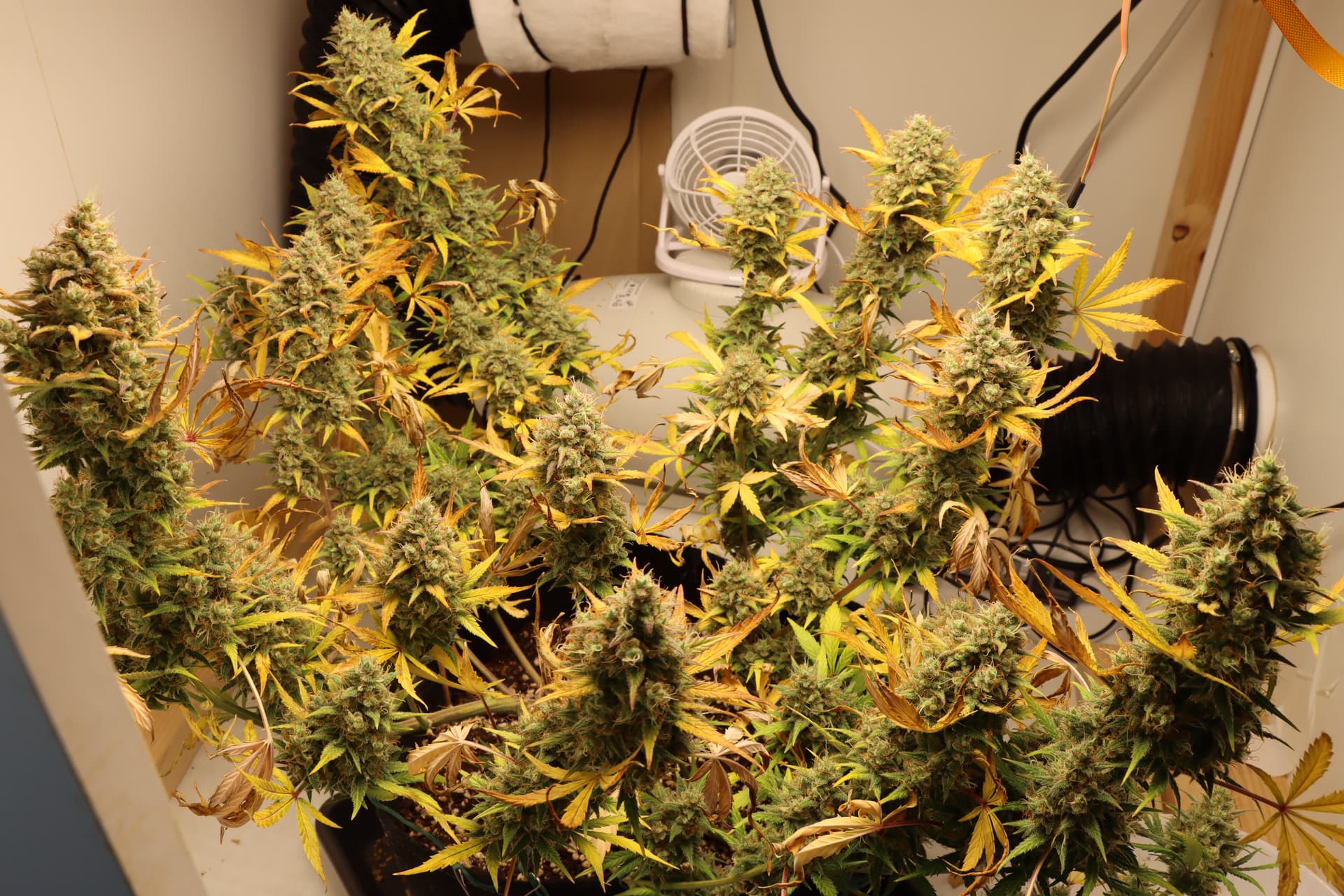 Jetzt lässt sich eine „normale“ Gelbfärbung beobachten, die ich entweder Stickstoffmangel oder einfach dem nahenden Lebensende zuschreiben kann.